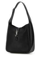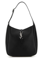Introducing the iconic Saint Laurent 5 à 7 Handbag in luxurious black leather. This small hobo-style bag features the signature YSL logo hardware and an adjustable shoulder strap for versatile wear.
