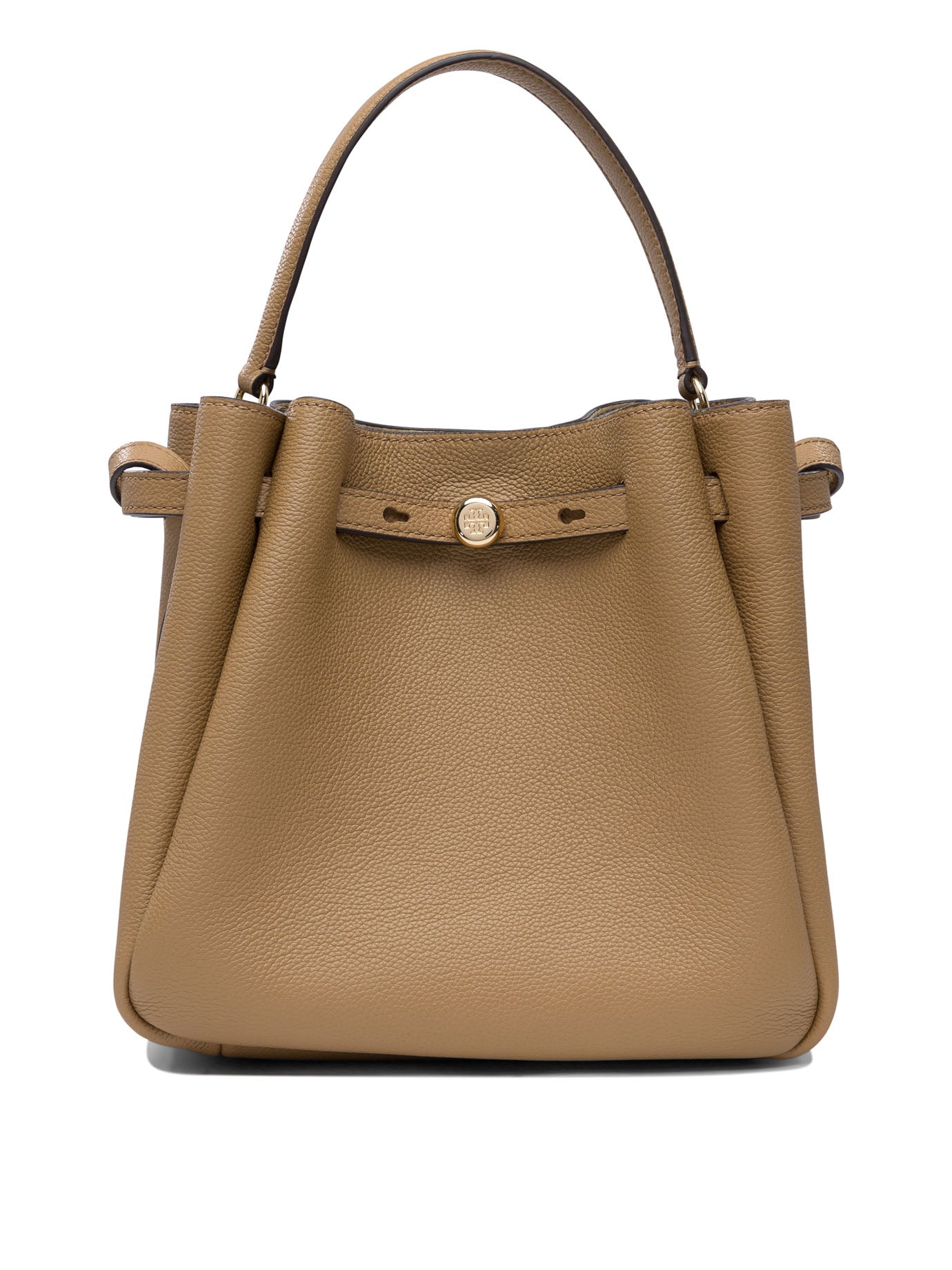 Elevate your everyday style with this exquisite brown cow leather handbag from Tory Burch. Crafted from premium leather in a sophisticated tan hue, this structured satchel features a classic silhouette with a top handle and elegant front flap closure with signature hardware detailing.