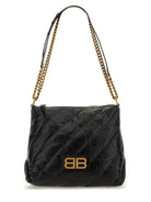 Elevate your everyday style with the Balenciaga Crush Zipped Hobo Bag, a luxurious statement piece crafted from 100% domesticated calf leather in Italy. This sophisticated hobo features an eye-catching quilted texture in rich black, accented by gleaming gold-tone chain straps and the iconic BB logo hardware.