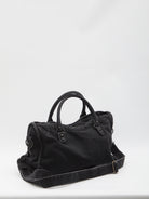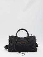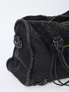 Introducing the iconic Balenciaga Le City Medium Bag, a timeless statement piece crafted in luxurious black-washed cotton-blend denim. This versatile design features two fixed top handles and an adjustable, removable shoulder strap, allowing you to carry it your way—whether hand-held for a polished look or crossbody for effortless style.