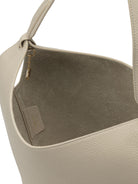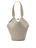 KHAITE'S "LOTUS MINI" HANDBAG, MADE OF GRAINED LEATHER, FEATURES A SCARF-INSPIRED DESIGN AND IS DISTINGUISHED BY ITS LIGHTWEIGHT CONSTRUCTION. THE ROUNDED BASE ENSURES STABILITY DURING USE, WHILE THE COMPACT SILHOUETTE PROMOTES AN ERGONOMIC HAND GRIP. THE INNER CLOSURE FEATURES JEWELED FROG, A FUNCTIONAL ELEMENT THAT ENSURES PROTECTION OF THE CONTENTS.