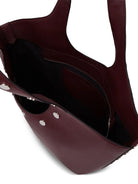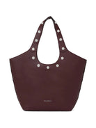Elevate your everyday style with the MARAIS MD TOTE from Karl Lagerfeld. This sophisticated burgundy tote features eye-catching silver stud detailing along the handles and neckline, creating a perfect balance of edgy and elegant design.