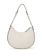 Elevate your everyday style with the Moon Shoulder Bag from Karl Lagerfeld. This sophisticated cream-colored handbag features a sleek curved silhouette and elegant chain strap detail that adds a touch of luxury to any outfit.