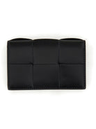 Elevate your professional accessories with this exquisite Bottega Veneta business card holder, featuring the house's iconic Cassette intrecciato weave pattern. Crafted from 100% luxurious calf skin leather in a sophisticated black finish, this compact piece showcases the Italian maison's legendary craftsmanship and attention to detail.