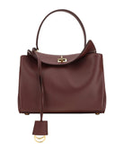 Introducing the Balenciaga Rodeo Small Shoulder Bag, a sophisticated statement piece that seamlessly blends timeless elegance with modern luxury. Crafted in rich burgundy leather, this structured bag features a distinctive turn-lock closure and a refined top handle, making it the perfect companion for both professional settings and elevated everyday wear.