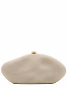The minimalist design showcases CULT GAIA's signature architectural aesthetic, with its sleek oval shape and subtle top clasp closure. The neutral tone makes it incredibly versatile, effortlessly complementing everything from cocktail dresses to formal gowns.