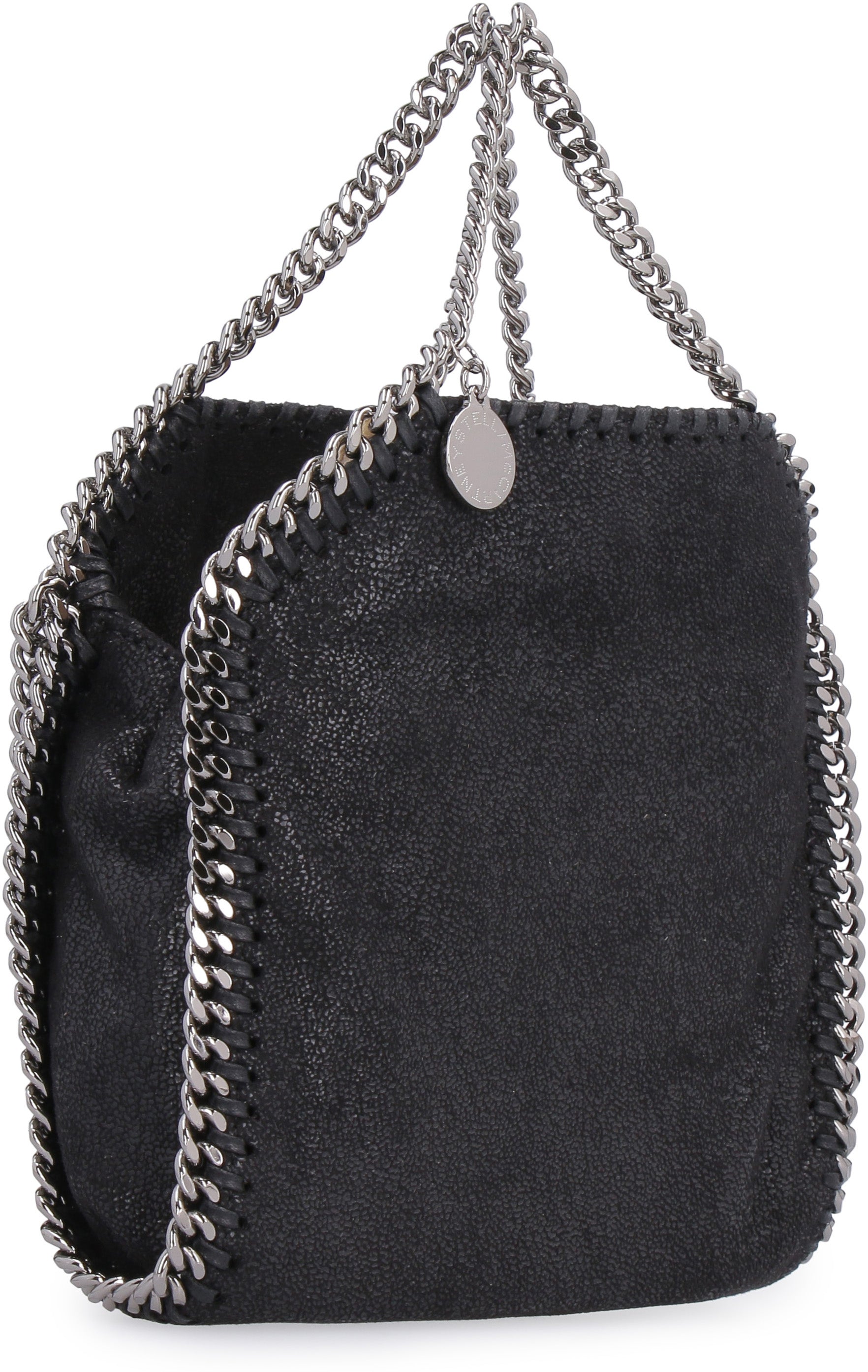 Elevate your everyday style with this iconic Tiny Tote Bag from Stella McCartney. Crafted with the brand's signature commitment to sustainable luxury, this compact tote features a sophisticated black finish beautifully accented by gleaming silver-toned chain detailing that frames the silhouette and forms the elegant chain-link handles.