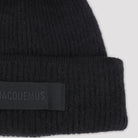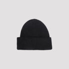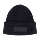 RIBBED KNIT BEANIE IN BLACK COLOR. FEATURES GROSGRAIN LOGO ON THE FRONT, CONTRASTING FOLDED BRIM.