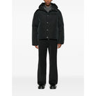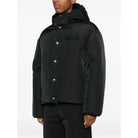 This stylish Jacquemus coat features a high neck design with a snap button fastening, offering both warmth and sophistication. The padded boxy shape provides a modern silhouette, while the welt pocket adds a practical touch. Perfect for layering, this coat is an essential piece for the contemporary man's wardrobe.