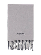 Elevate your everyday style with the L Echarpe Moisson Scarf from Jacquemus. This sophisticated gray scarf features elegant fringe detailing and the signature Jacquemus branding for an understated luxury touch.