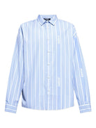 Elevate your wardrobe with Jacquemus' La Chemise Simon, a beautifully crafted button-down shirt featuring classic light blue and white vertical stripes. This relaxed-fit shirt combines timeless elegance with contemporary styling, making it perfect for both professional and casual settings.