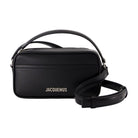 Elevate your everyday style with the LE BANETO crossbody bag from Jacquemus. This sleek black leather design features a structured rectangular silhouette with both a top handle and adjustable crossbody strap for versatile carrying options.