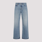 Elevate your denim collection with the LE DE-NIMES DROIT from Jacquemus. These sophisticated straight-leg jeans feature a classic high-waisted silhouette in a beautiful light wash that effortlessly bridges casual and refined styling.