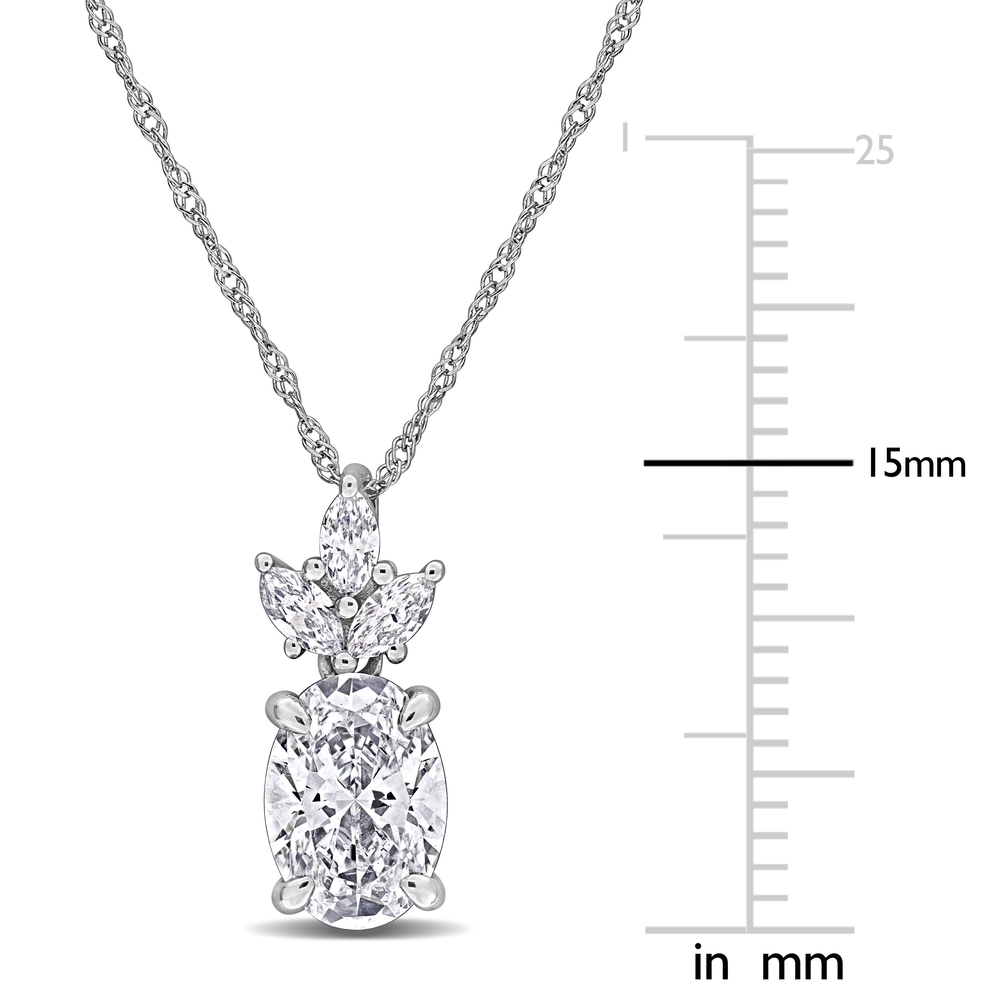 Adorn yourself with the exquisite beauty of this Oval and Marquise-Cut Lab-Grown Diamond Pendant Necklace in 14k White Gold. This stunning pendant features a combination of oval and marquise-cut lab-grown diamonds arranged in a sophisticated and eye-catching design. Crafted with precision in lustrous 14k white gold, the pendant hangs elegantly from a 17-inch chain, perfect for special occasions or as a cherished gift, this diamond pendant embodies ethical elegance and timeless sophistication.