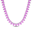 Lab-Created Pink Sapphire Pear Shape Tennis Necklace in Sterling Silver