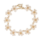 Product Description: Connect with your inner flower child with this statement necklace. Dazzling gold plated flowers feature unblemished pearl petals and crystal centers.