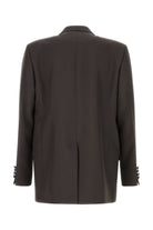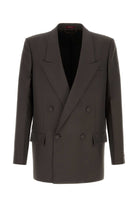 Elevate your wardrobe with this sophisticated Chocolate Panama Blazer from Gucci. This impeccably tailored double-breasted blazer features a rich chocolate brown hue and classic notched lapels, creating a timeless silhouette that exudes refined elegance.