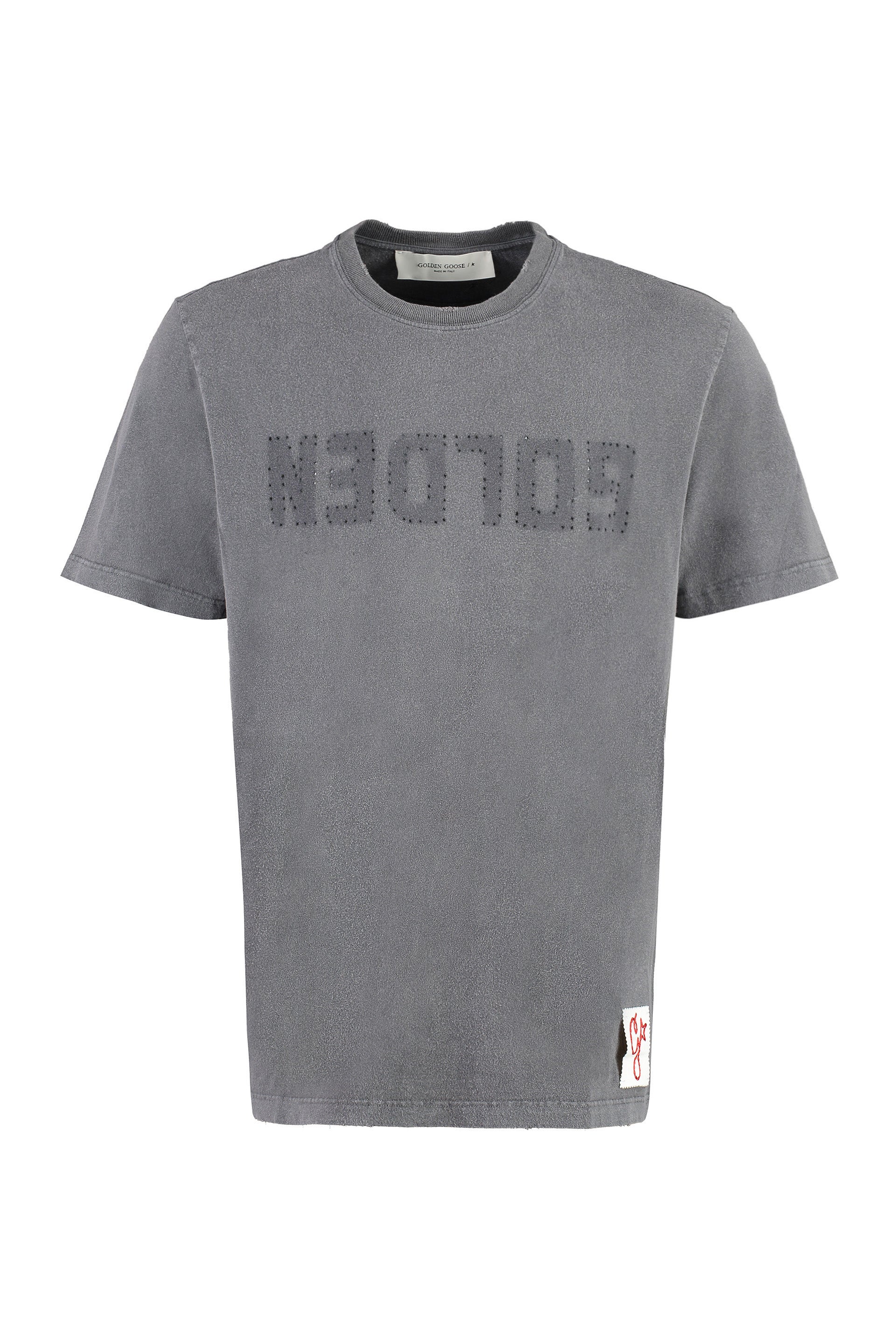 Elevate your everyday wardrobe with this dark grey cotton t-shirt from Golden Goose. Crafted from premium cotton, this comfortable crew neck tee features subtle branded detailing for an understated yet refined look.