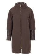 Elevate your outerwear collection with this innovative Detachable-Panels Wool Coat from Herno. This contemporary design features a luxurious wool body with unique detachable quilted polyamide sleeve panels, offering versatile styling options for changing weather conditions.