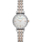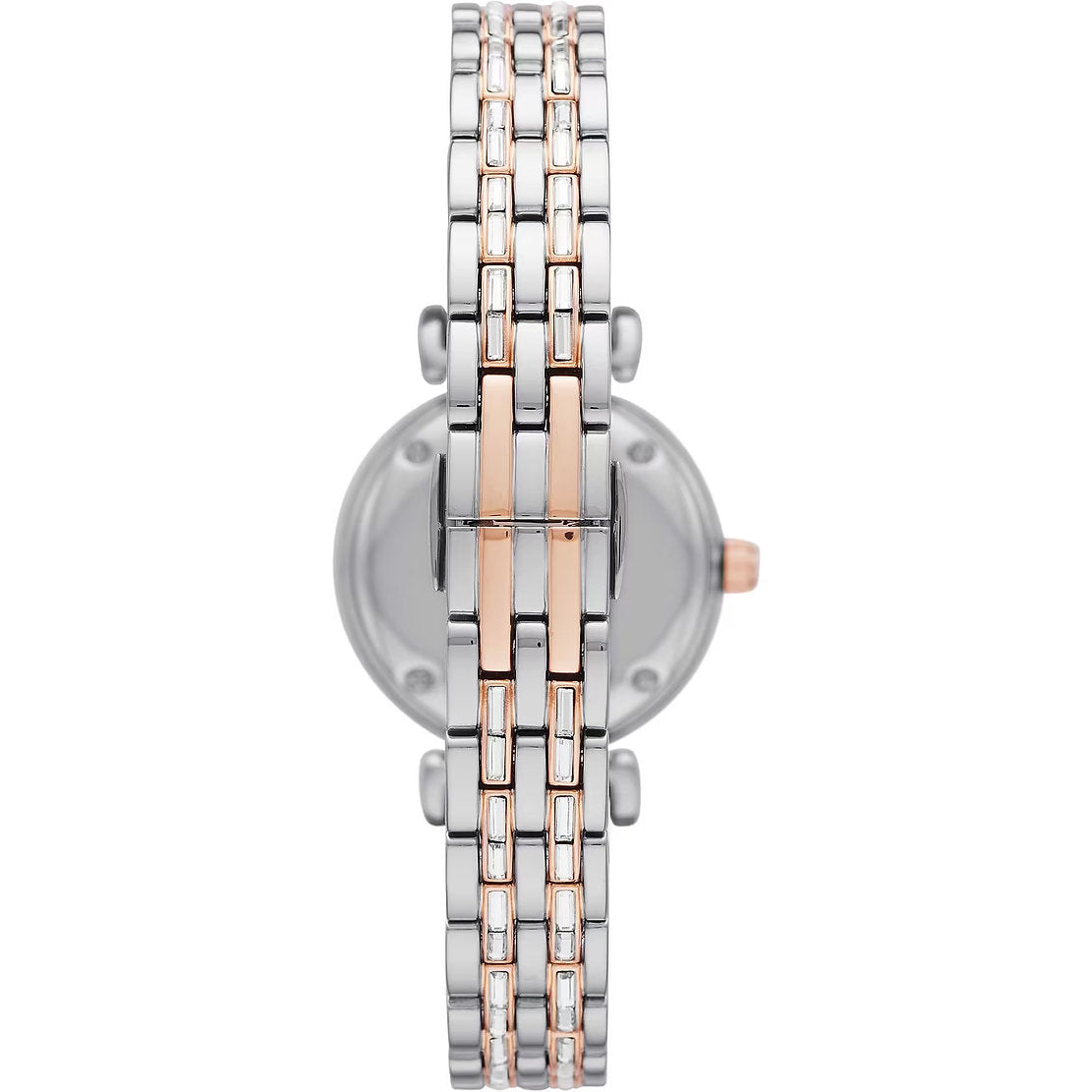 Experience classic sophistication with the Emporio Armani Gianni T-Bar Women’s Watch. This luxurious timepiece showcases a radiant silver dial paired with a polished stainless steel bracelet secured by an elegant deployante clasp. Featuring a sturdy 28mm steel case and precise quartz movement, it combines reliable performance with refined design. Adorned with delicate crystals on the case and bracelet, this watch elevates any ensemble with a subtle yet striking statement of elegance.