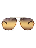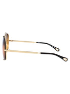 Elevate your eyewear collection with these stunning aviator sunglasses from Chloé. Featuring a luxurious gold-tone metal frame and gradient lenses that transition from rich brown to warm yellow, these sunglasses offer both style and sun protection.