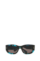 Make a bold statement with these Gucci Multicolor Acetate Sunglasses. Featuring a striking cat-eye silhouette in a vibrant black and turquoise tortoiseshell acetate, these designer shades effortlessly blend retro glamour with contemporary edge.