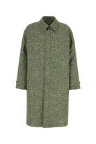 Elevate your outerwear collection with this stunning Printed Poplin Coat from Gucci. Crafted in a sophisticated olive-green hue with an intricate textured print, this coat features a classic shirt collar, button-front closure, and long sleeves for timeless appeal.