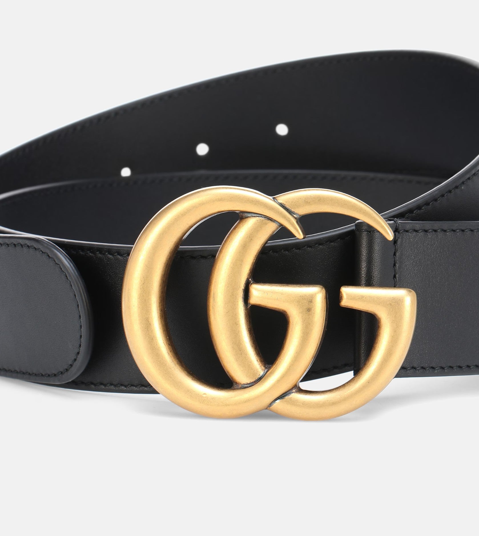 Elevate your look with this black Re-Edition wide leather belt by Gucci. Crafted from smooth calf leather, it features the brand’s signature GG logo in gleaming gold-toned metal at the forefront. Perfectly designed to complement everything from casual denim to elegant silk skirts, this Italian-made accessory combines timeless luxury with versatile style. It includes a leather lining, buckle closure, and comes with a dust bag for safekeeping.
