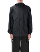 Designed with the modern man in mind, it features a hood with built-in cap and adjustable drawstring, two-way zip closure for versatile styling, and elasticated cuffs for a secure fit. The double welded front pockets provide practical storage, while vents at the armholes and back yoke ensure breathability during active wear.