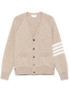 Elevate your knitwear collection with this sophisticated V-neck cardigan from Thom Browne. Crafted from premium wool, this classic piece features a refined button-front closure and the designer's iconic 4-bar stripe detail on the sleeve.