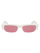 Elevate your eyewear collection with these striking white acetate sunglasses from Alexander McQueen. Featuring a modern square silhouette and rose-tinted lenses, these sunglasses offer both UV protection and high-fashion appeal.