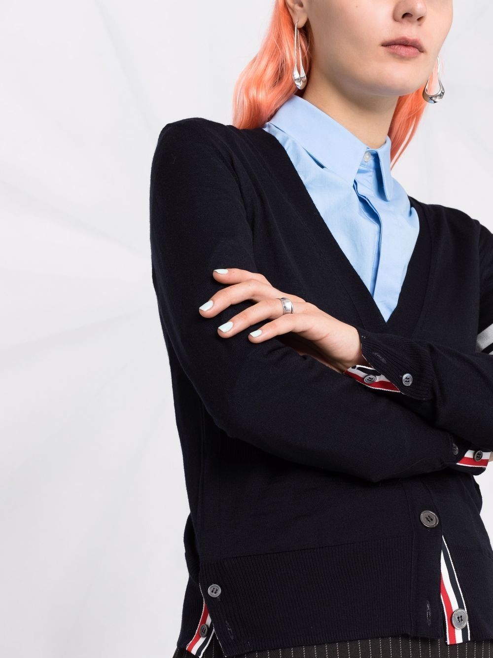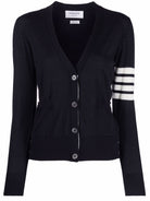 Elevate your knitwear collection with this exquisite Thom Browne wool cardigan in sophisticated navy. Crafted from luxurious merino wool in a fine knit, this piece features the brand's iconic 4-bar stripe detail on the sleeve—a signature touch that speaks to refined taste.