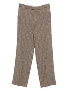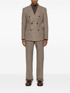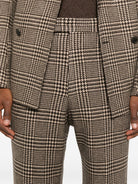Elevate your professional wardrobe with these sophisticated wool trousers from Emporio Armani. Featuring a timeless glen plaid pattern in warm brown and tan tones, these dress pants showcase impeccable Italian craftsmanship and attention to detail.