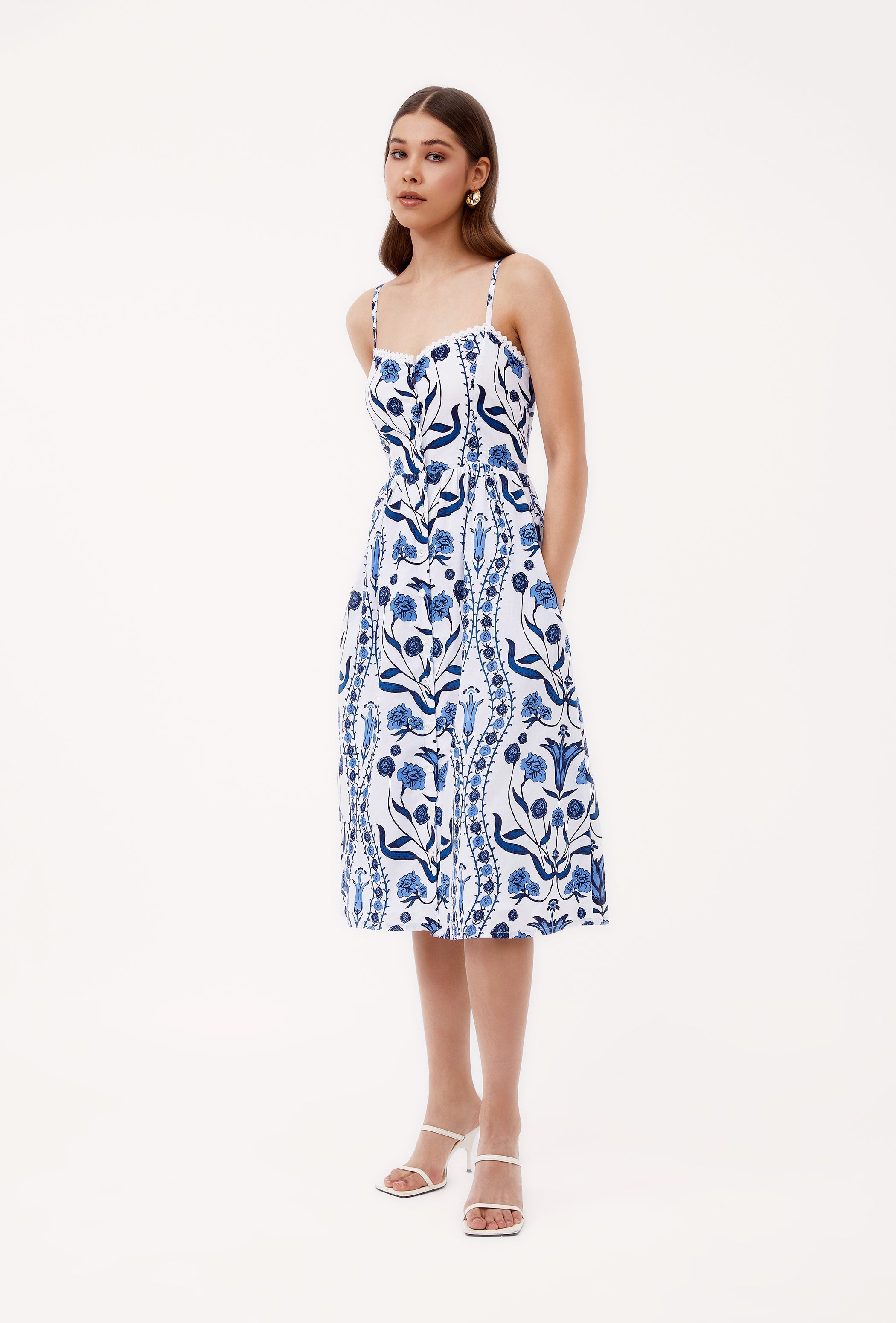 The Louise dress channels relaxed old world charm featuring a sweetheart neckline, button-down front, and an A-line silhouette that effortlessly flatters your figure. With adjustable shoulder straps, hidden pockets and a smocked back, this dress ensures a perfect fit every time. Louise made from a soft, breathable cotton cambric fabric that will keep you cool on a hot summer day. This floral print embodies an Italian countryside summer, running through flower-filled fields, exuding freedom and joy.