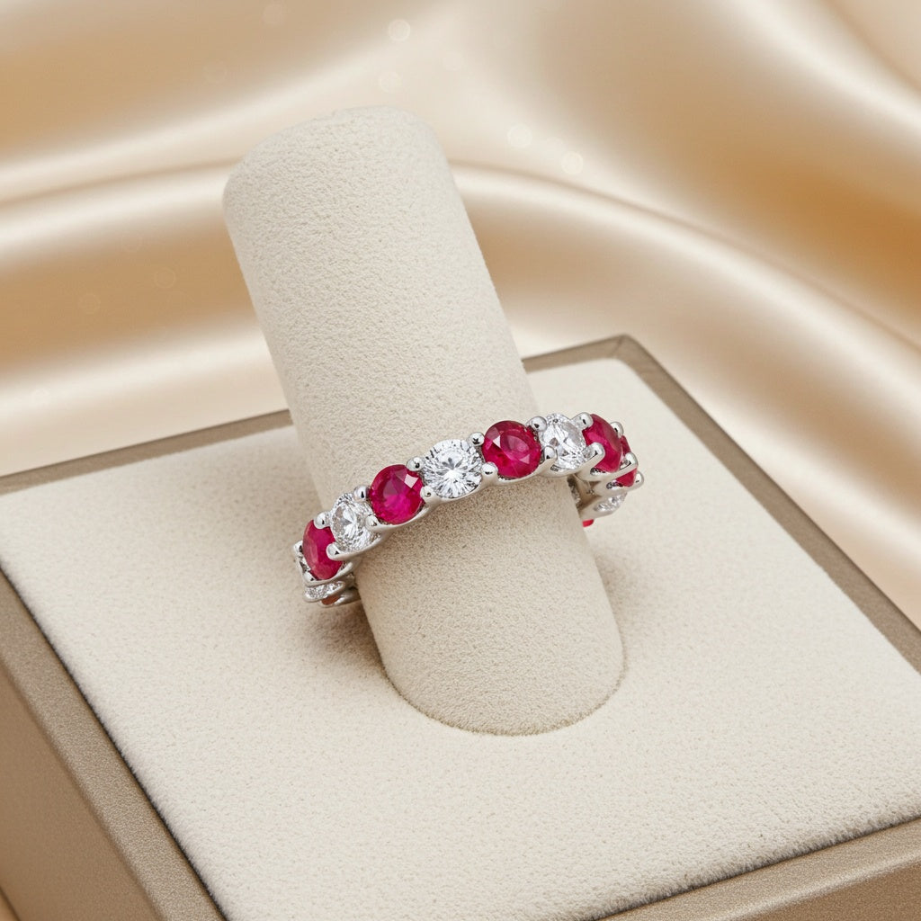 Lab-Created Ruby & White Sapphire Eternity Band Ring in Sterling Silver