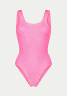 One-piece HAILEY BUBBLE GUM by PARAMIDONNA. Designed in a universal size fitting XS to 2XL, this model features an open back. The upper part resembles a sports bustier with two straps for added support. The HAILEY model offers a shaping effect while ensuring comfort.