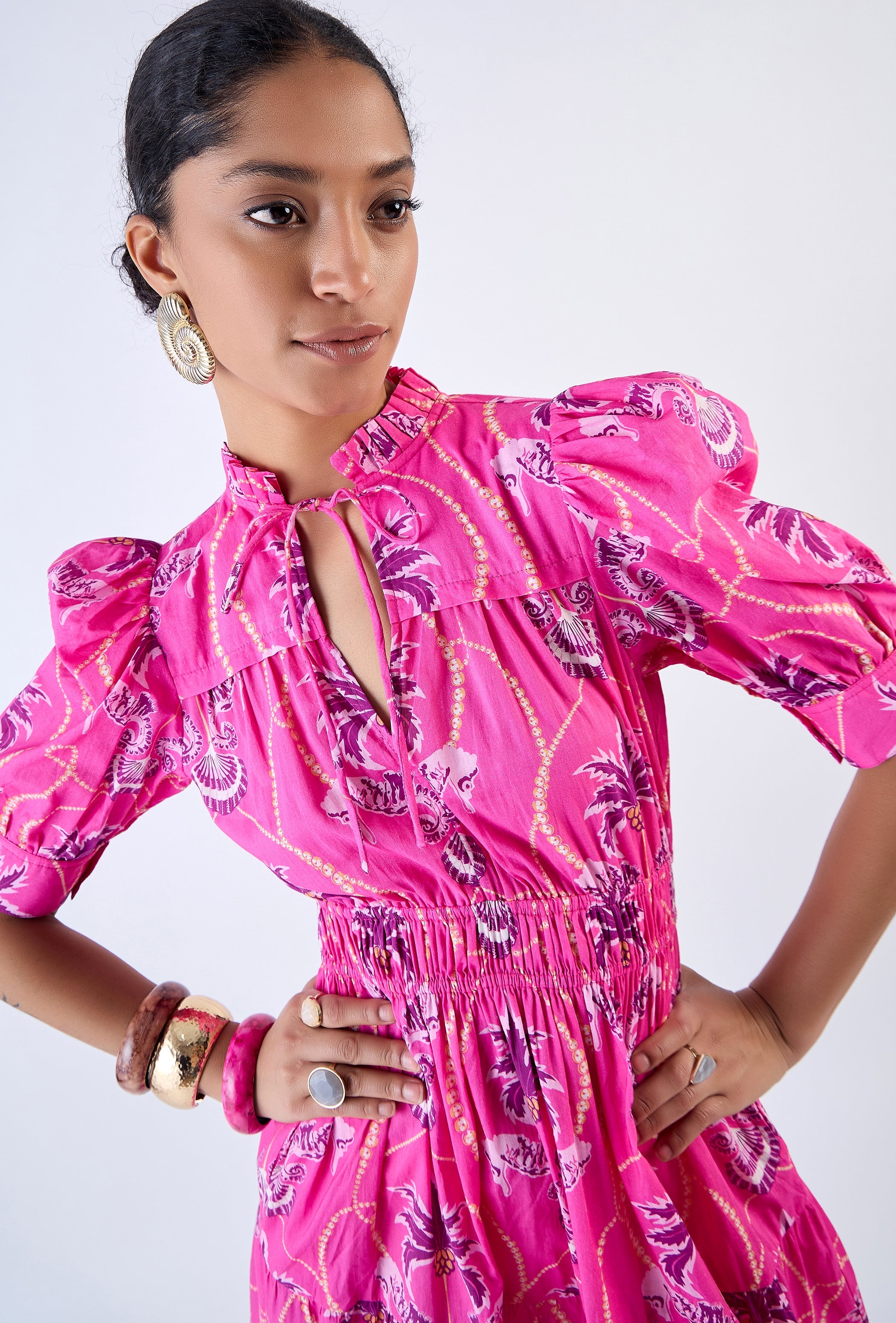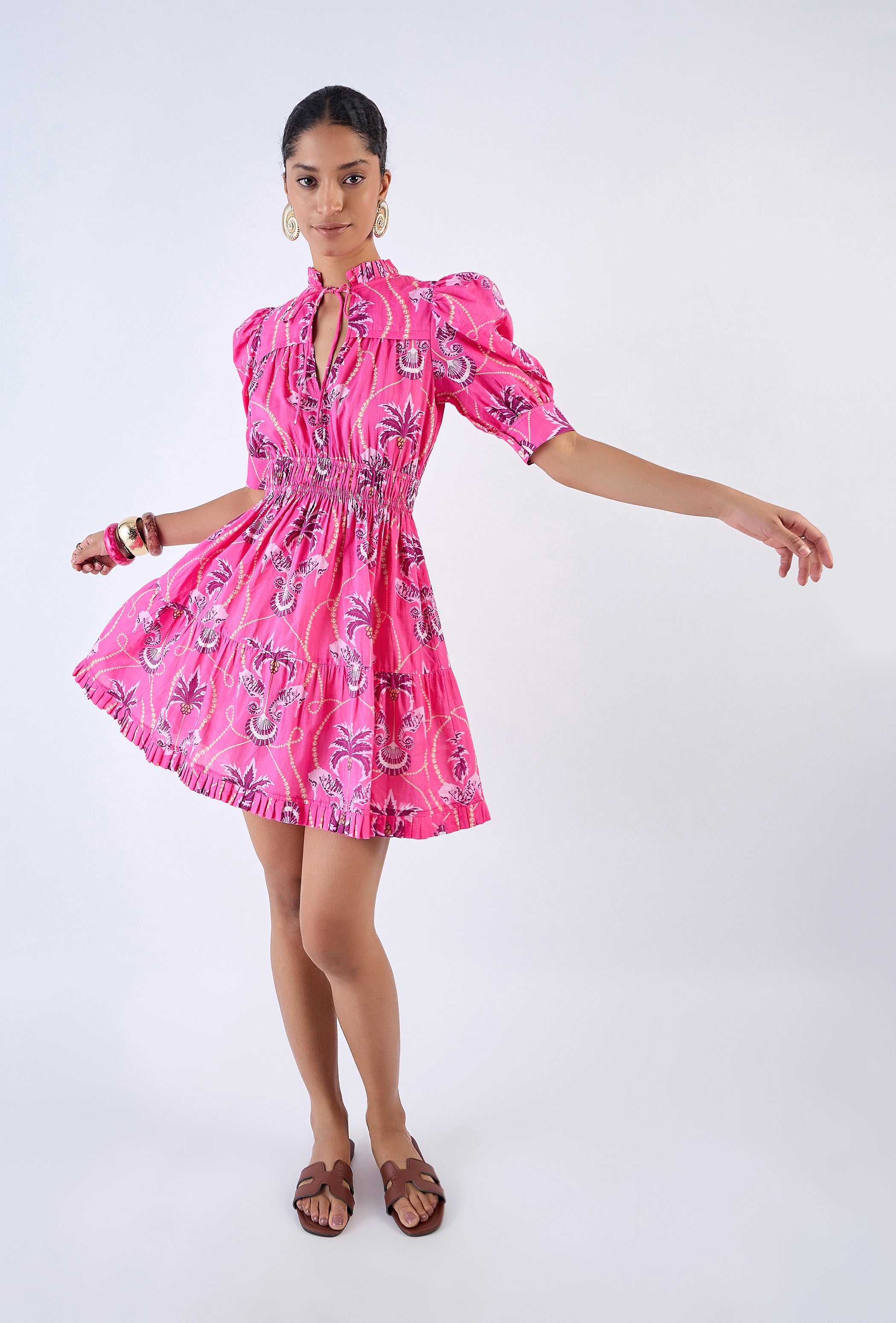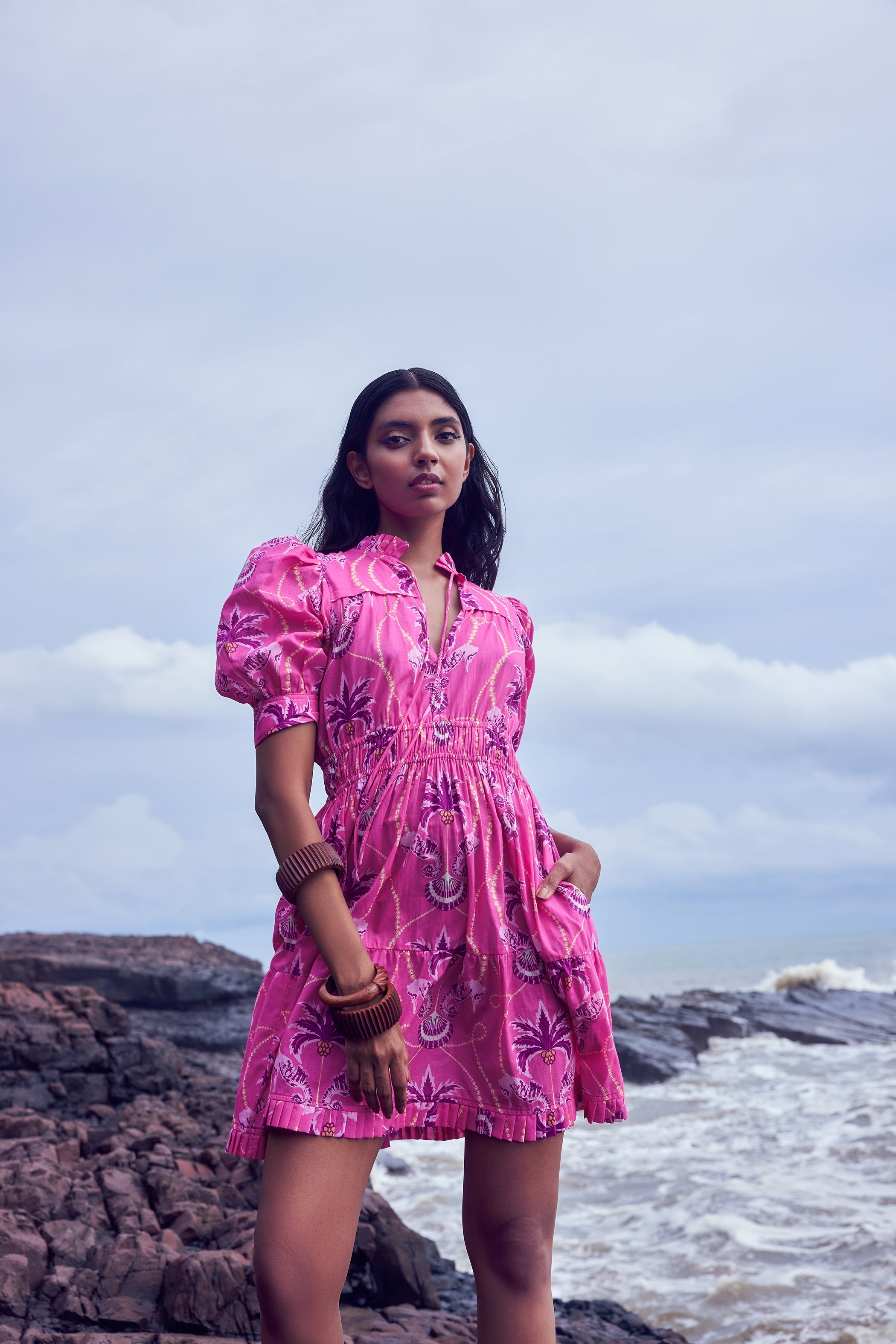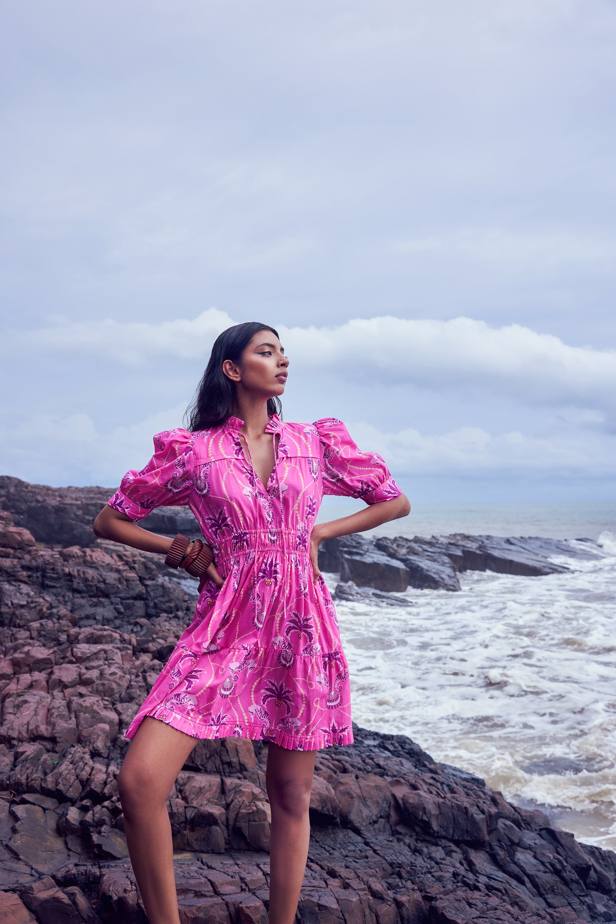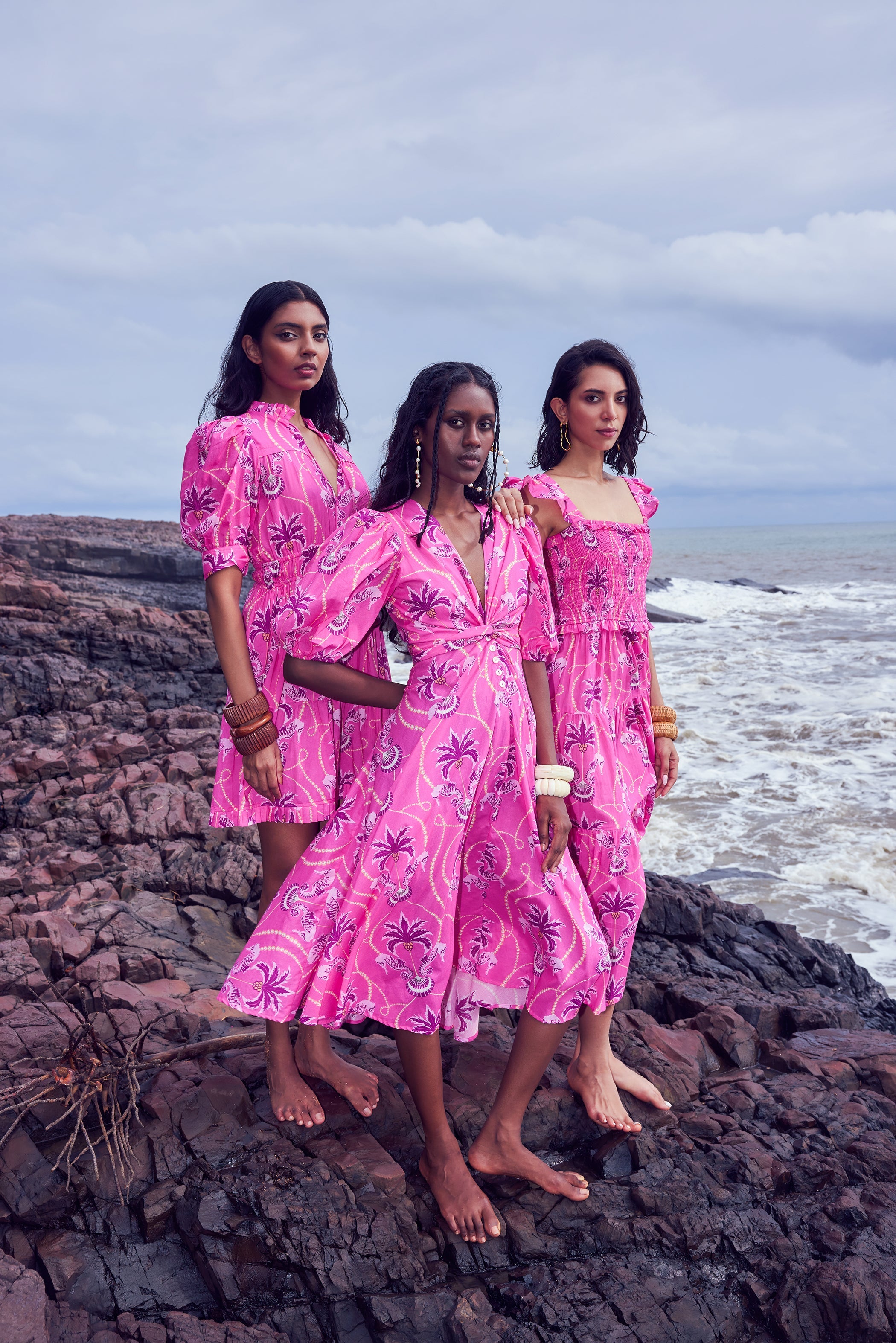 The Alice is the perfect mini dress for sun-filled days and tropical nights. The pleats, smocking details, deep V-neck and flattering shape make Alice a true showstop- per. Alice is made from a soft, breathable cotton cambric fabric. Inspired by the adventure of sailing to a secluded island, ‘Paradise Island’ references the pristine beauty of an untouched shore.