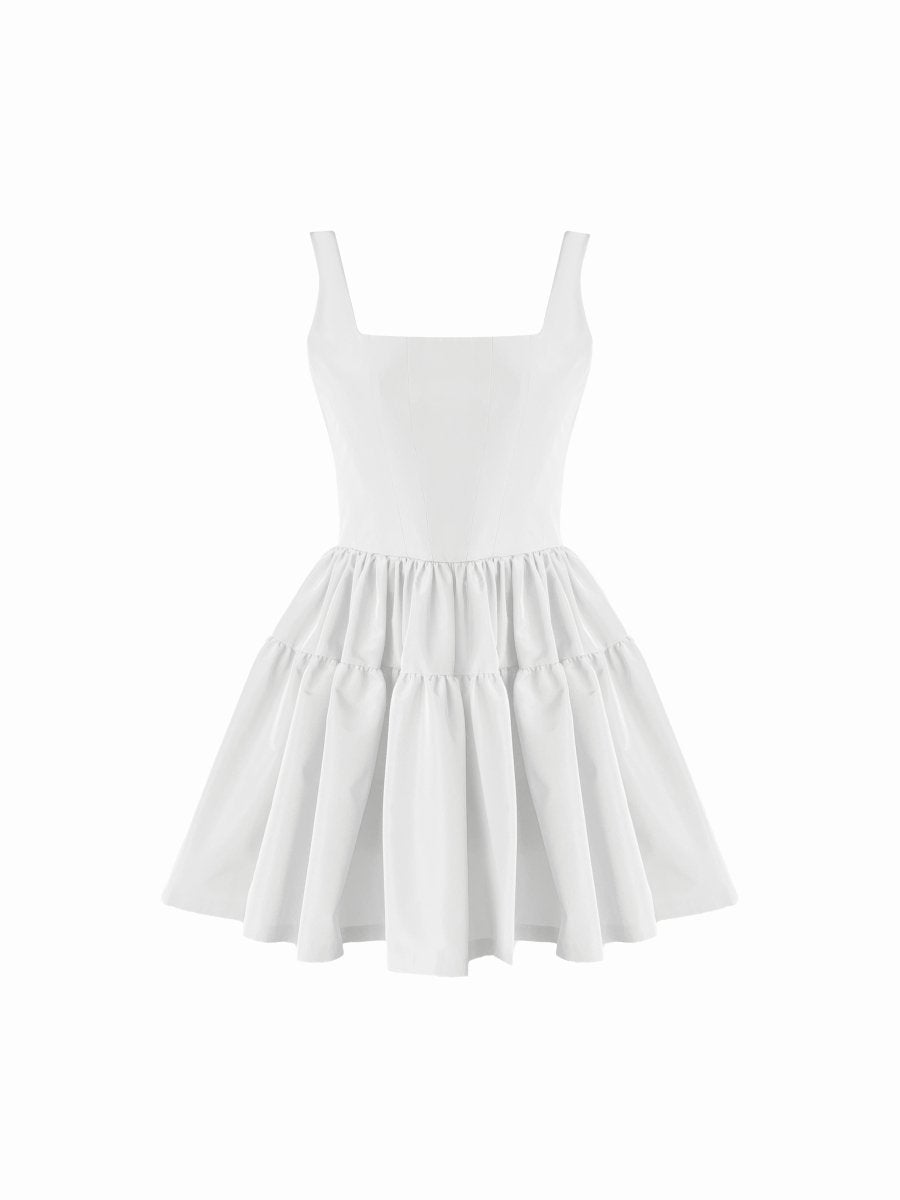 The Candela Dress features a structured formal collar and thick straps, offering a flattering and secure fit. The fitted bodice beautifully complements the flared skirt, designed with princess stitching for a feminine silhouette. A fluffy, voluminous skirt adds a touch of whimsy, making this dress as fun as it is refined.