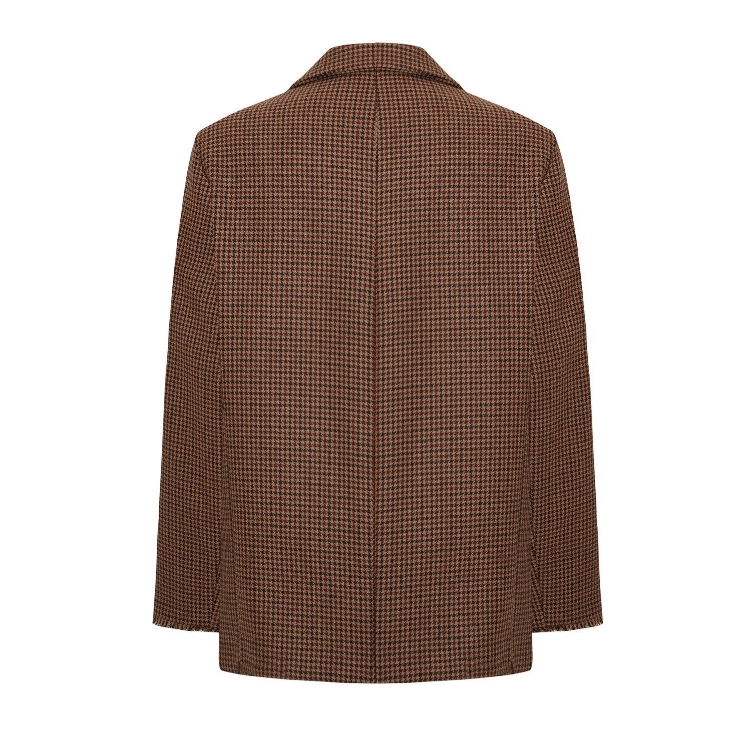 Crafted from a luxurious blend of 49% polyester, 44% wool, 4% polyamide, and 3% cashmere, this blazer offers the perfect balance of structure and softness. The rich fabric ensures warmth and comfort, while the refined buttons and clean lines add an elevated touch to its classic design.