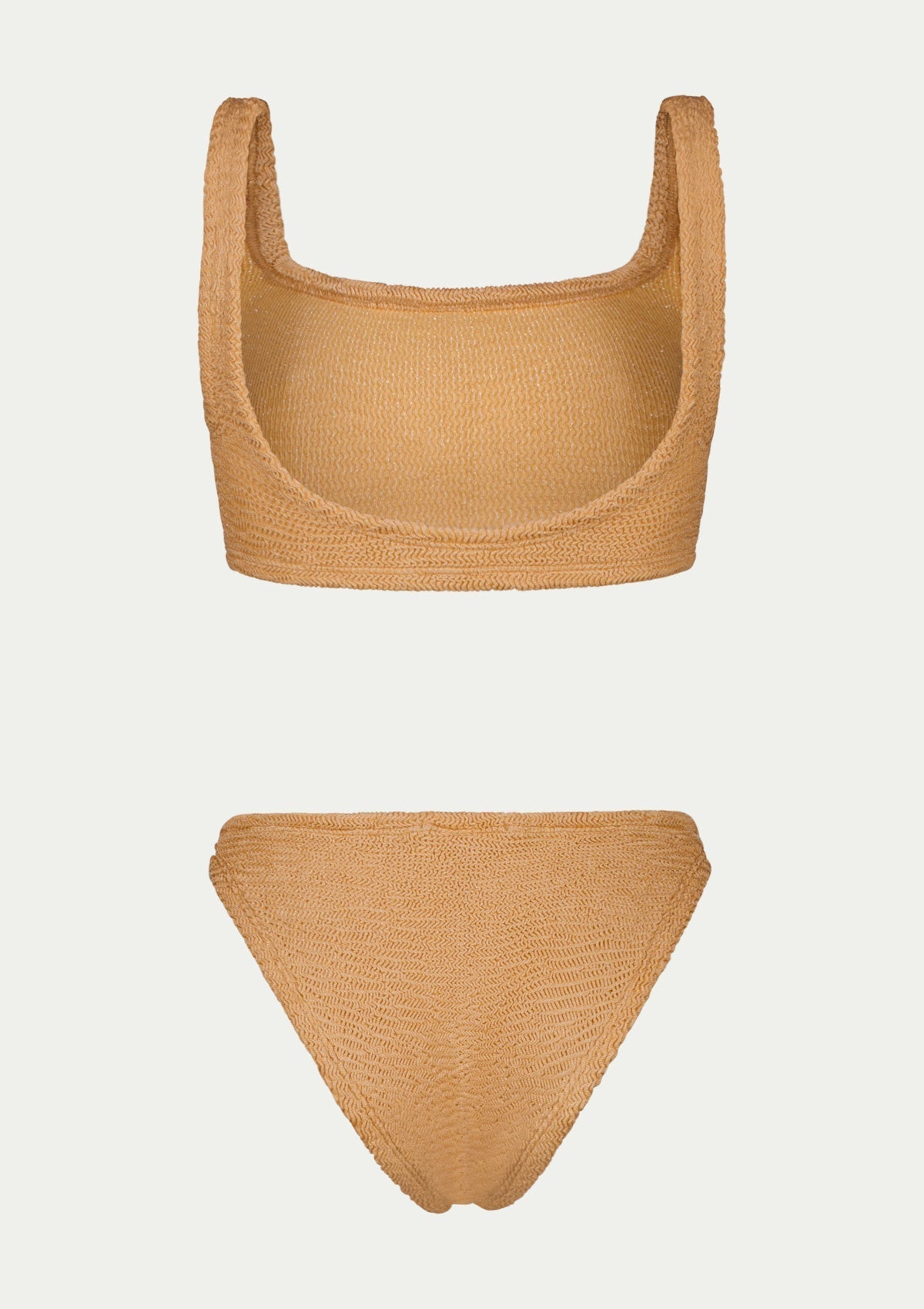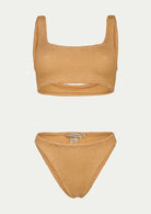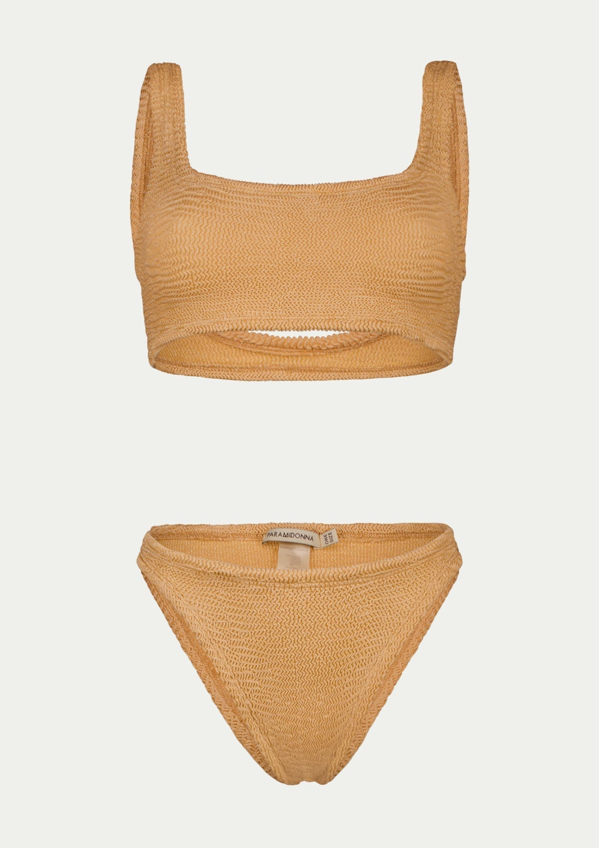 Two-piece swimsuit set EMILY by PARAMIDONNA. The universal size of the model fits sizes XS to 2X. The top of the model is a type of square, sport bustier with straps and the bottoms are mid-cut with low waist. The EMILY Half Swimsuit are great for women of all chest sizes, always fitting great, providing comfort. This classic swimsuit set is a favourite for ladies of all body types and is one of the brand's best sellers.