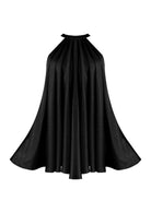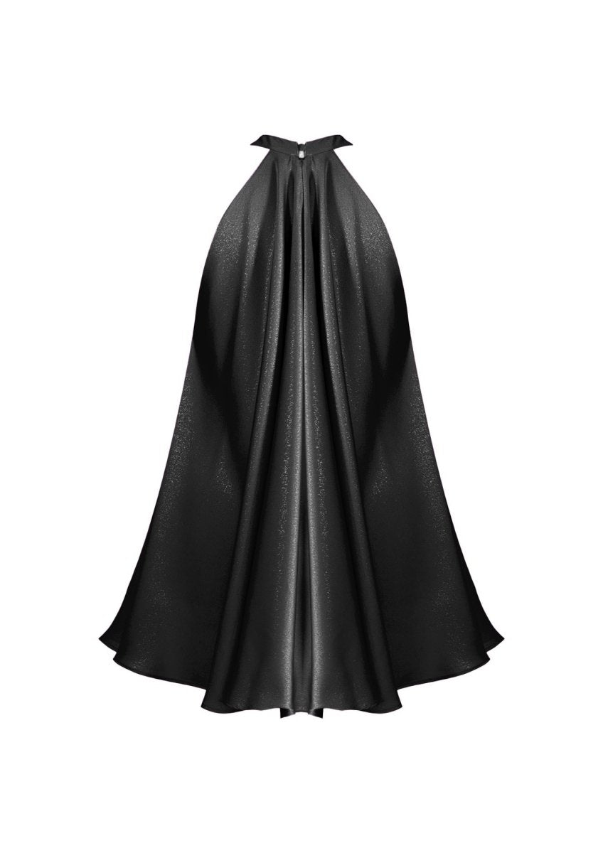 Featuring a sleek halter neckline, this dress beautifully highlights the shoulders and collarbone, exuding a refined charm. The relaxed bodice ensures comfort, while maintaining an effortlessly chic appeal. Falling to a flattering mini length, the skirt allows for freedom of movement and adds a playful edge. A discreet back zipper completes the look, providing a smooth, tailored finish.