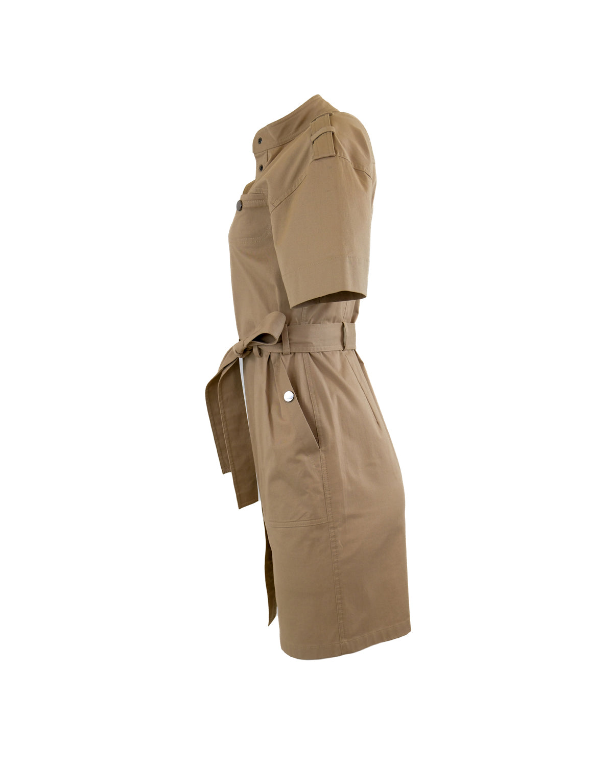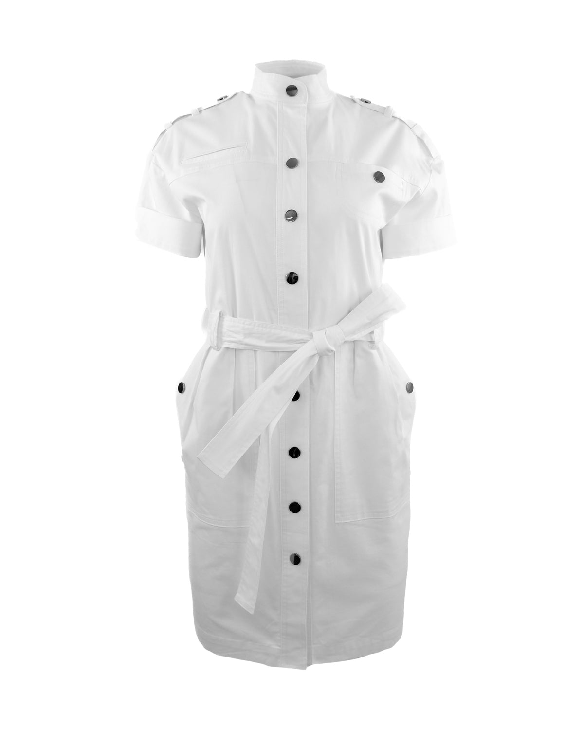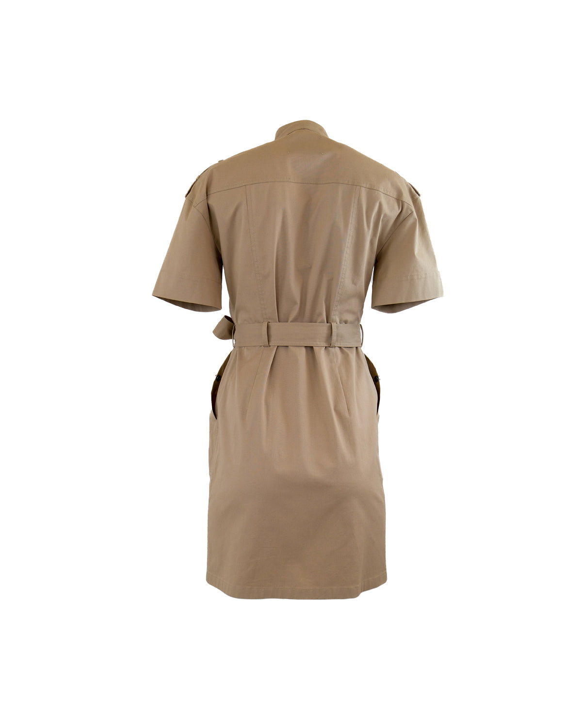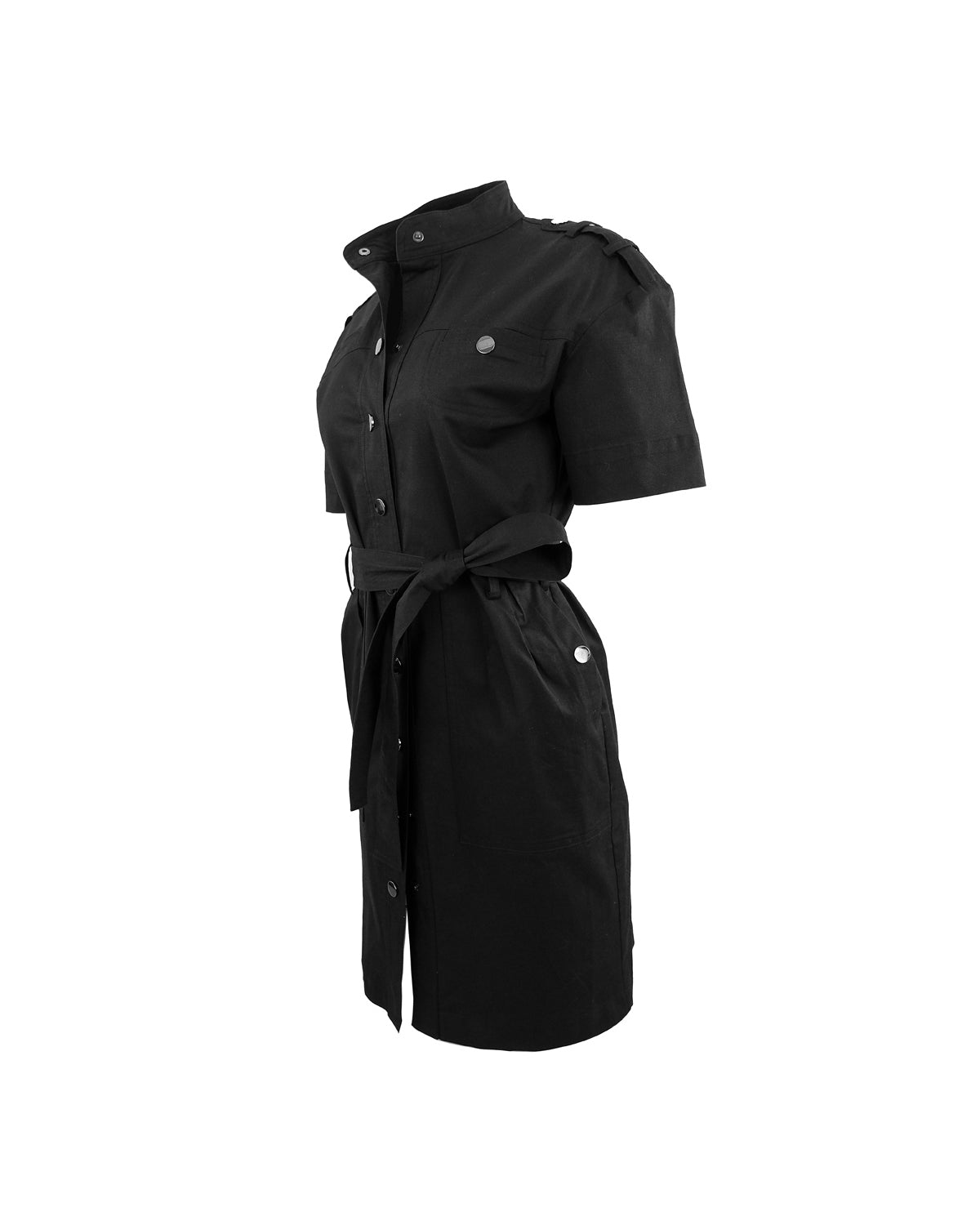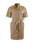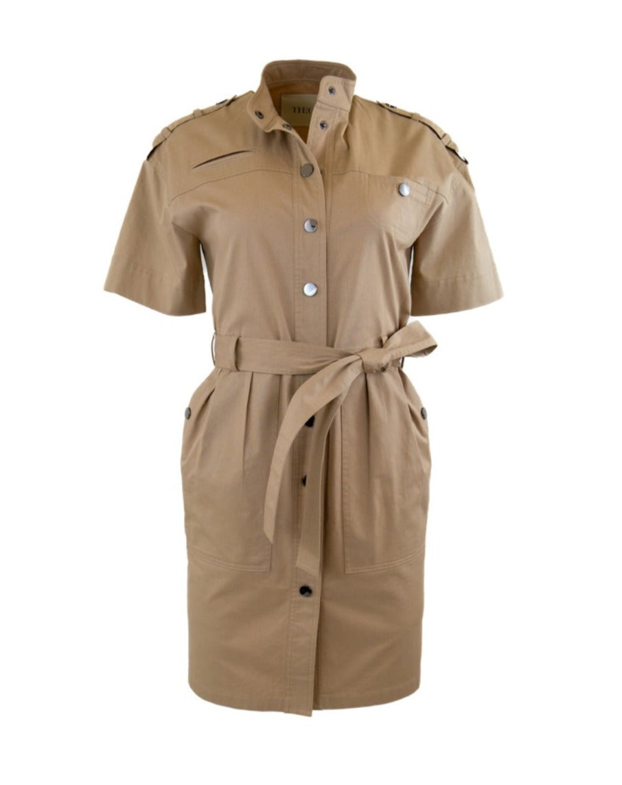 Effortlessly combine style and functionality with the Thallo Safari Dress. This military-inspired design features front pocket details and shoulder straps, while the included belt cinches in at the waist for a flattering silhouette. Whether you're exploring the city or embarking on a safari adventure, this dress will keep you comfortable and chic.