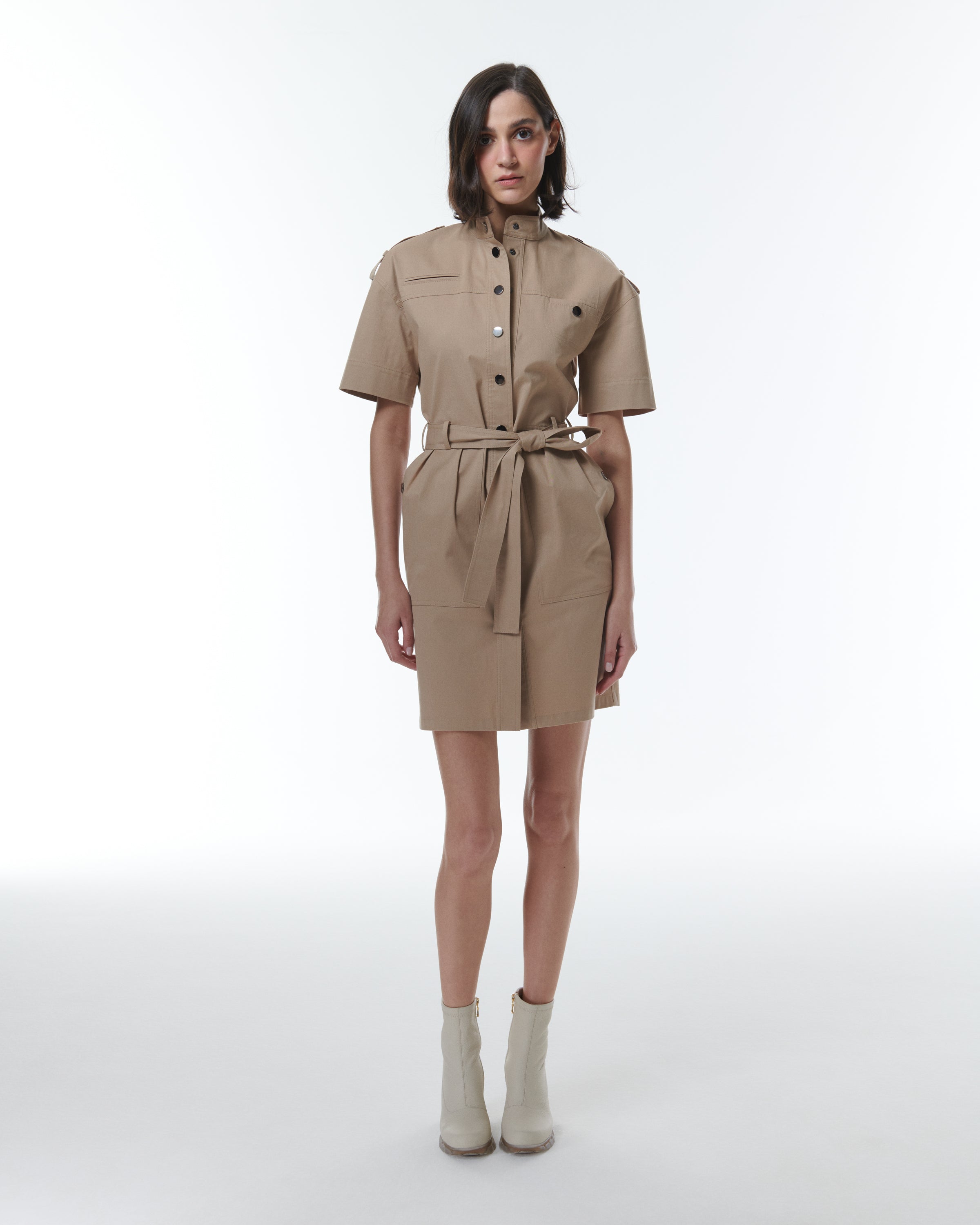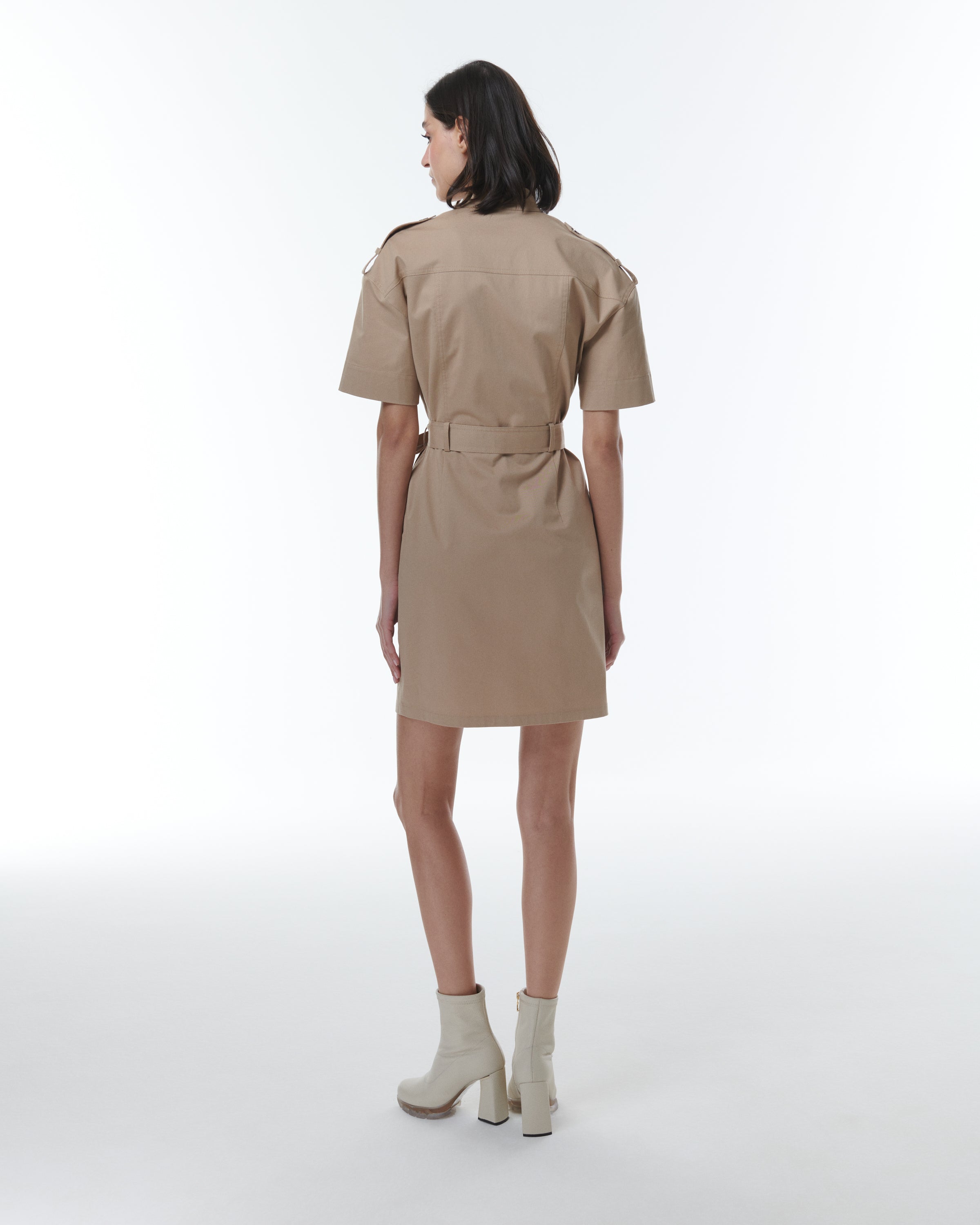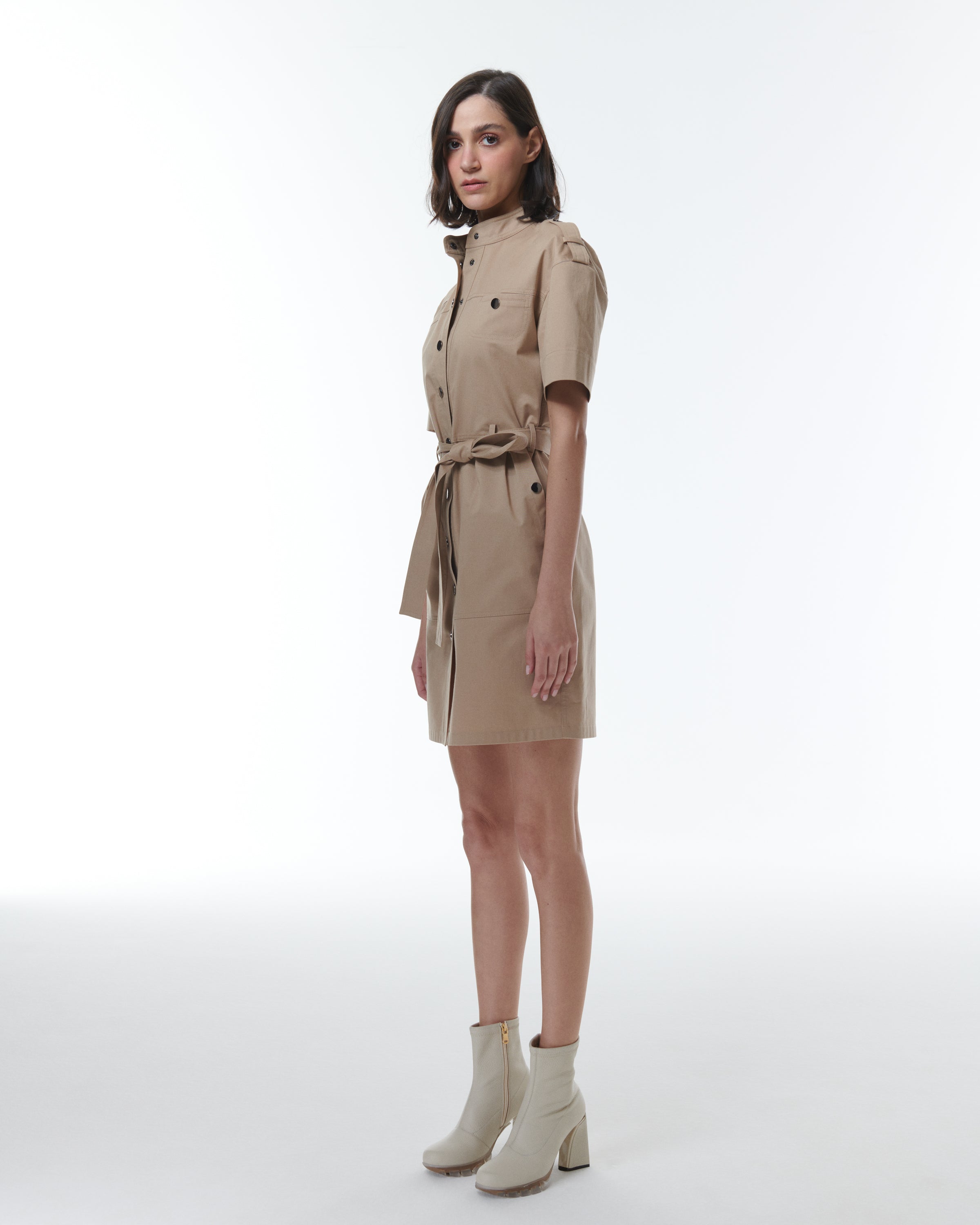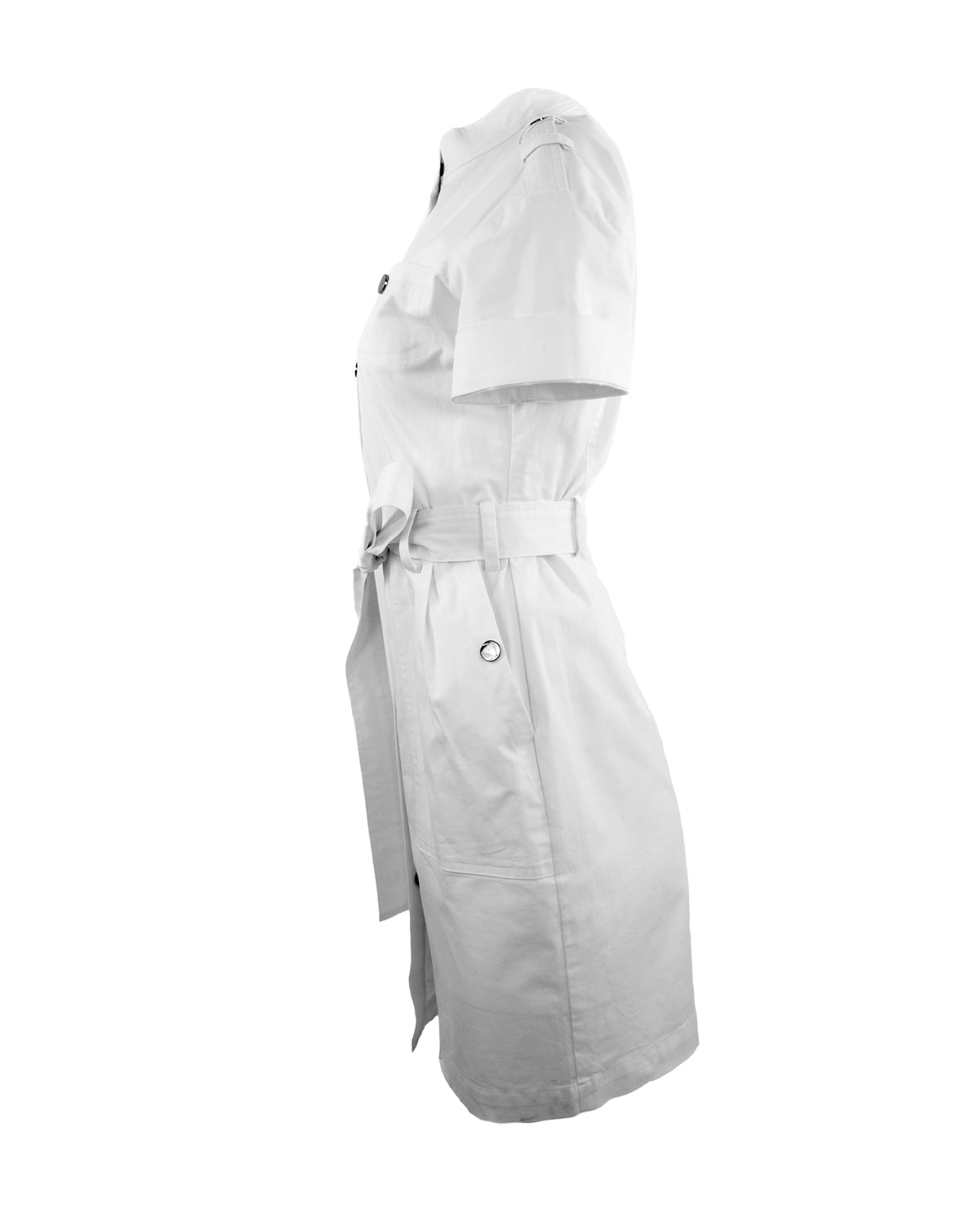 Effortlessly combine style and functionality with the Thallo Safari Dress. This military-inspired design features front pocket details and shoulder straps, while the included belt cinches in at the waist for a flattering silhouette. Whether you're exploring the city or embarking on a safari adventure, this dress will keep you comfortable and chic.