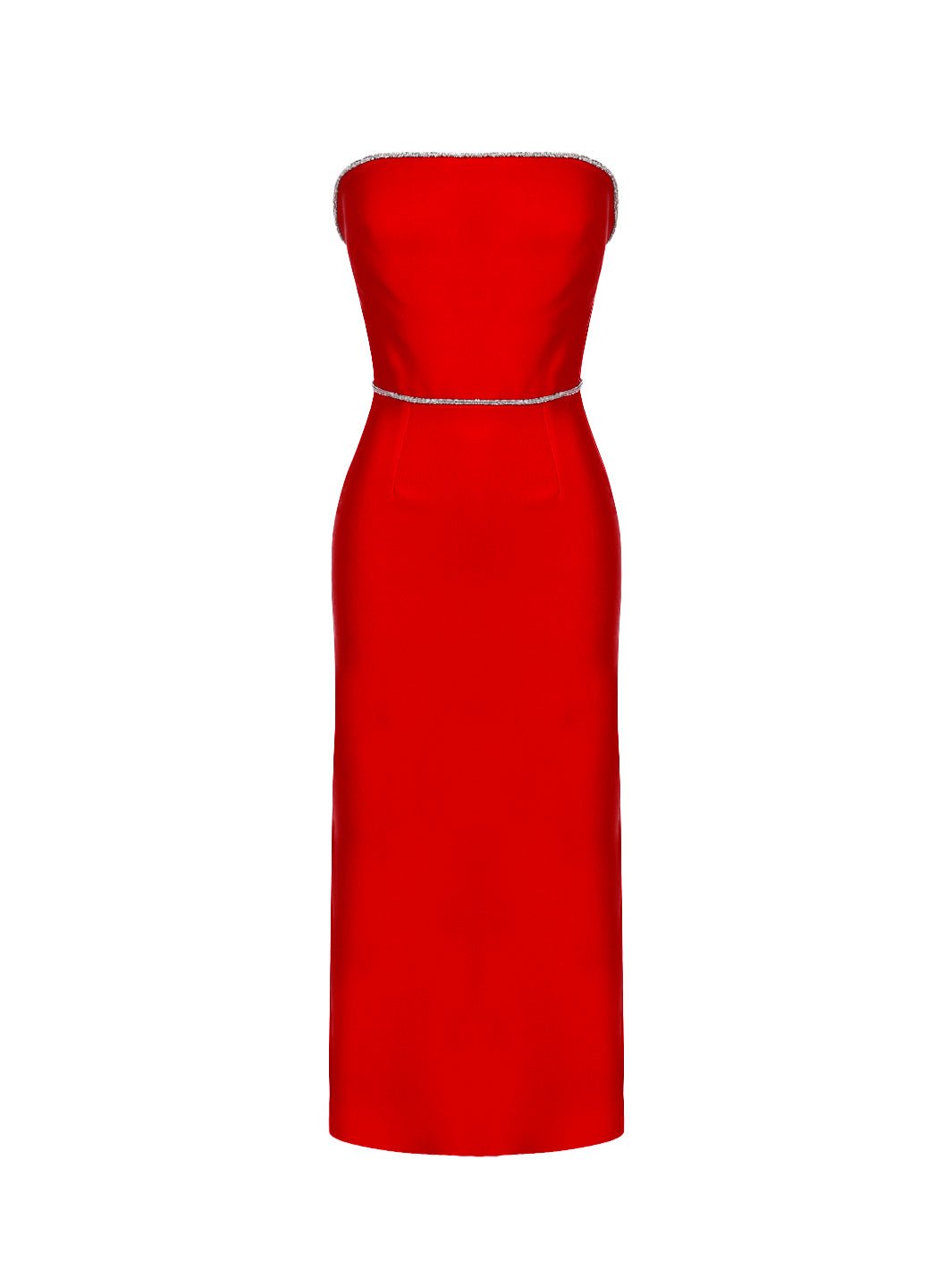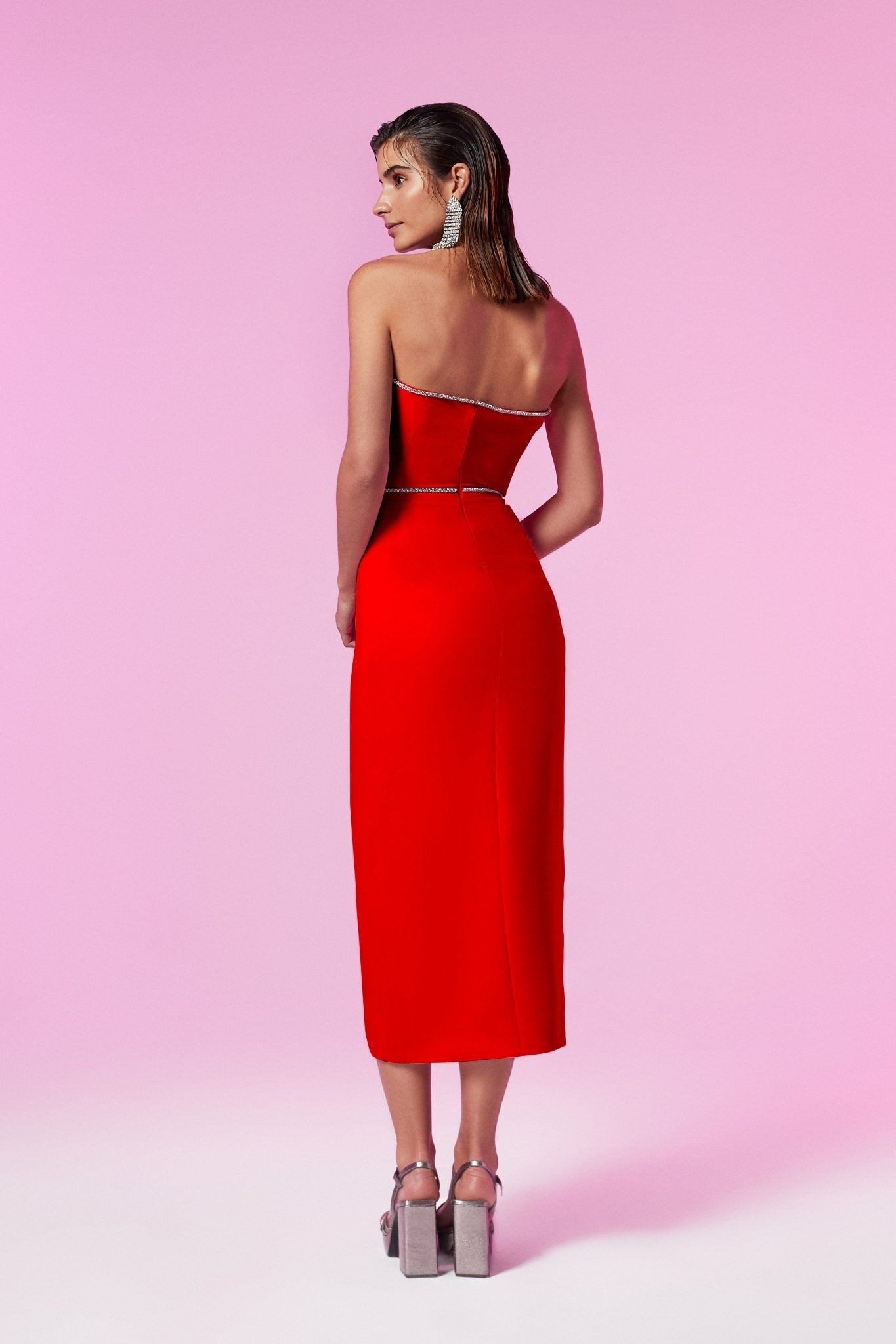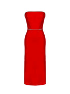 Crafted for a smooth, flattering fit, the Zelda Dress is fully lined to ensure a seamless silhouette. Its timeless strapless cut and midi length offer versatility, allowing you to style it for a variety of events—whether you're attending a gala, a cocktail party, or an elegant dinner.