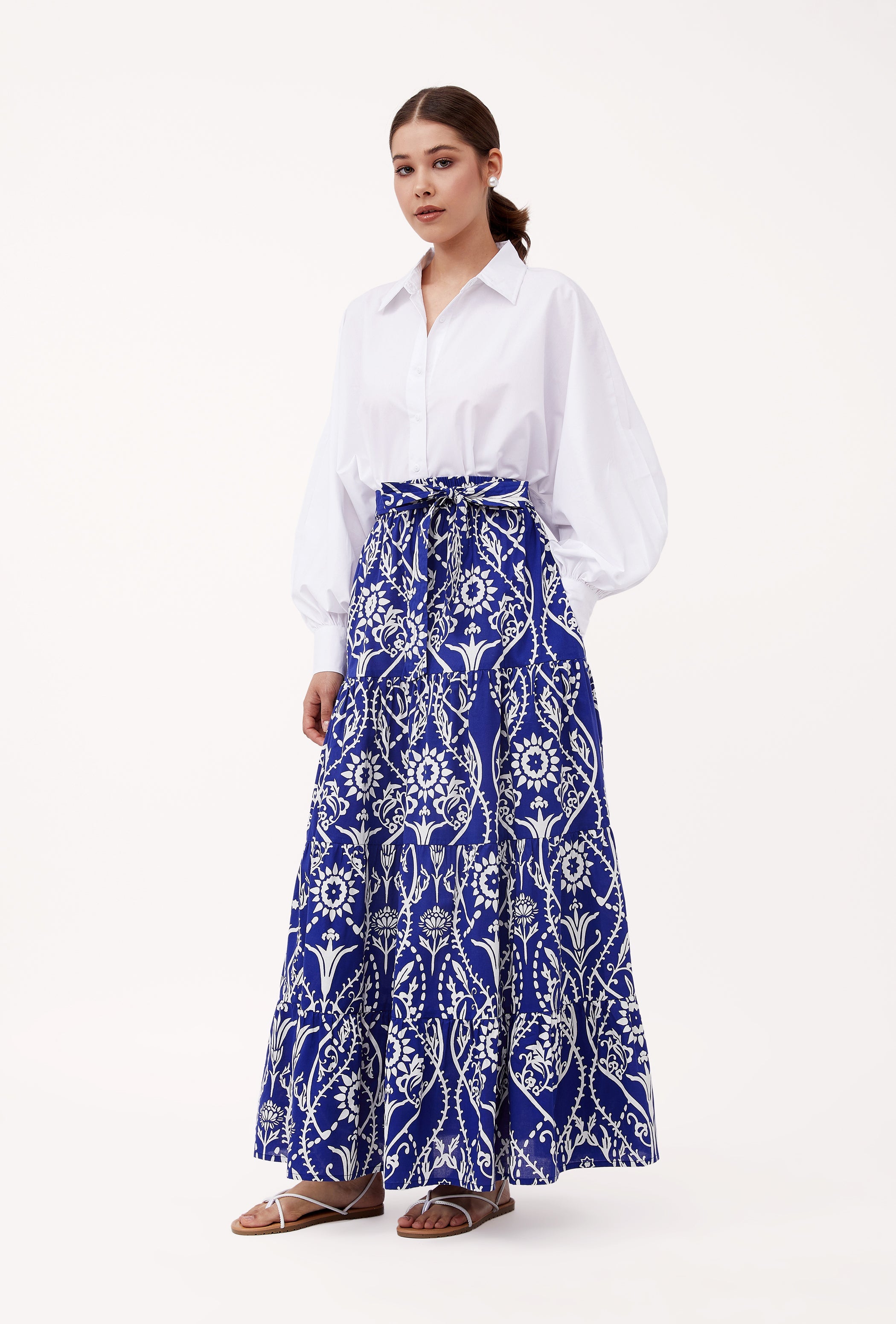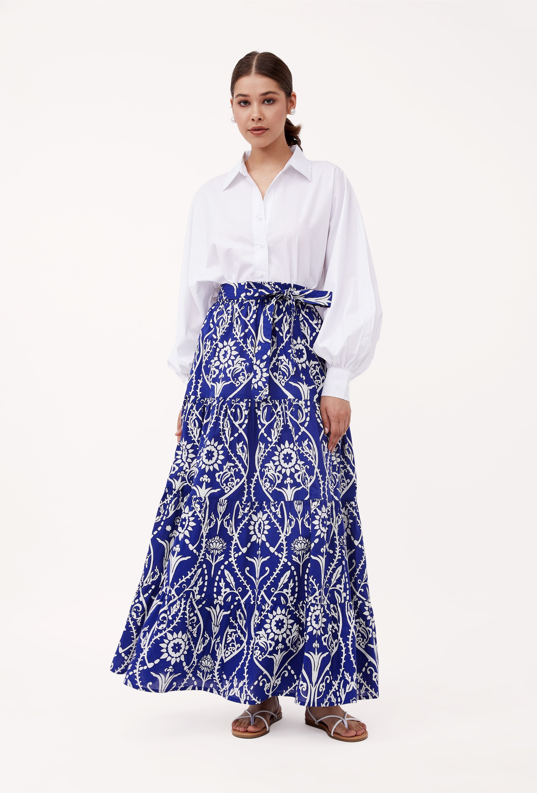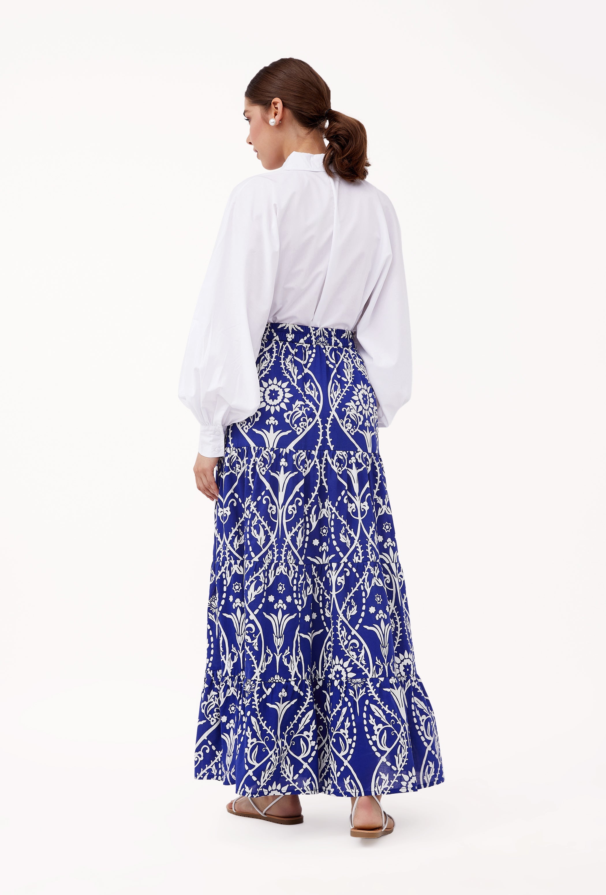 The Gia Midi skirt is back in new stunning prints. The elastic waist, tiered A-line and hidden pockets channel elegance with ease. Gia is made from a soft, breathable cotton cambric fabric that will keep you cool on a hot summer day. The print design takes cues from Italian cathedrals, with round shapes reminiscent of rose windows and intricate floral ornaments inspired by the facades' carvings and sculptures.