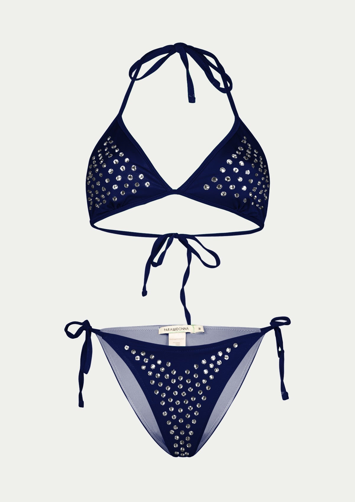Details: 100% recycled material, SWAROVSKI crystals, adjustable straps, low waist, mid-cut, triangle cups