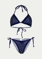 Crafted from fully recycled Lycra, the LIVIA swimsuit is a striking fusion of sustainability and sophistication. Adorned with over 200 meticulously placed SWAROVSKI crystals, this radiant design catches the sunlight with every movement, creating an unforgettable, shimmering silhouette. The top features triangle cups with delicate adjustable ties at the neck and back, allowing for a personalised and flattering fit. The bikini bottom boasts a graceful V-front cut with side ties and moderate coverage, designed to enhance and elongate the figure. The LIVIA model is made for women who embrace bold elegance and effortless glamour. A true statement piece, it promises to turn heads and elevate your presence wherever your summer takes you.