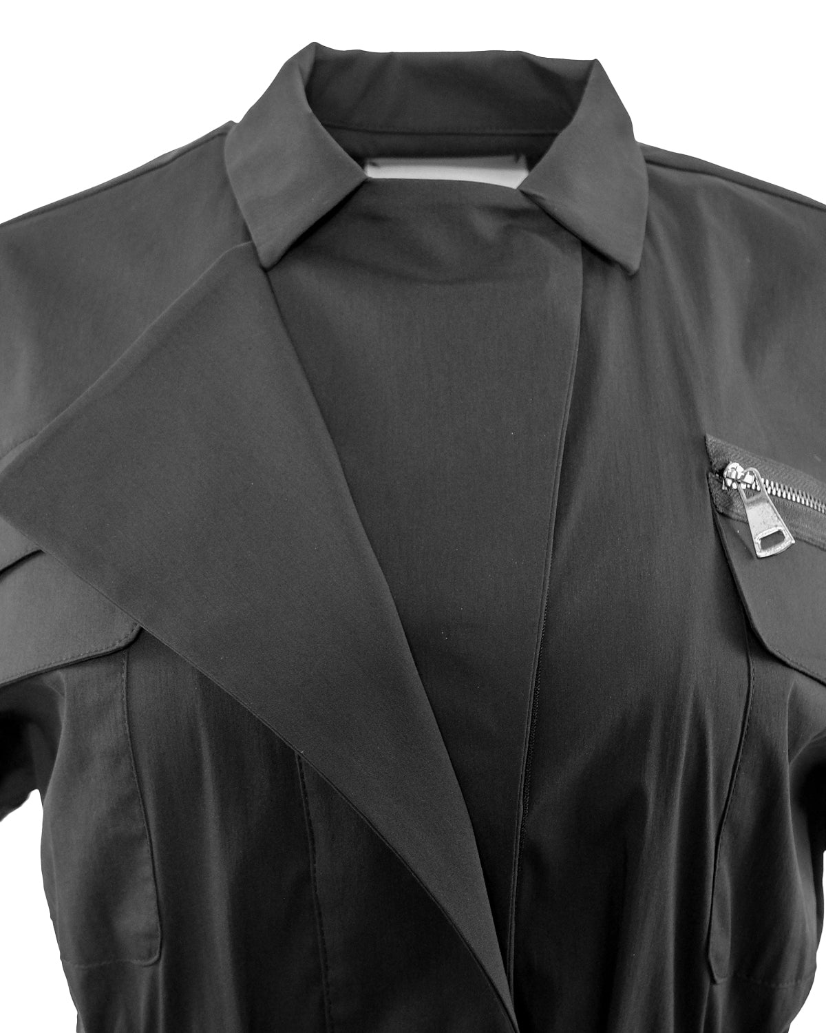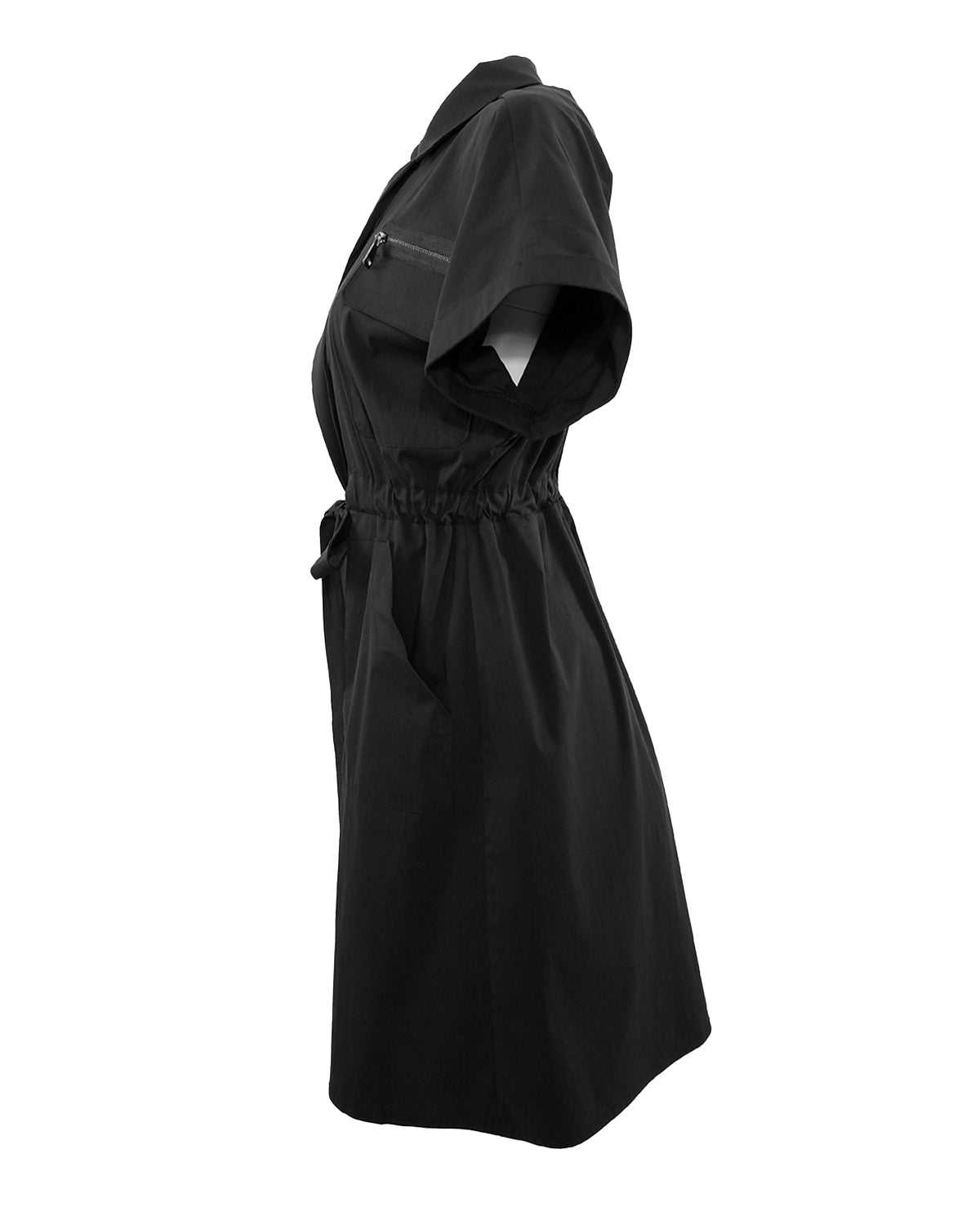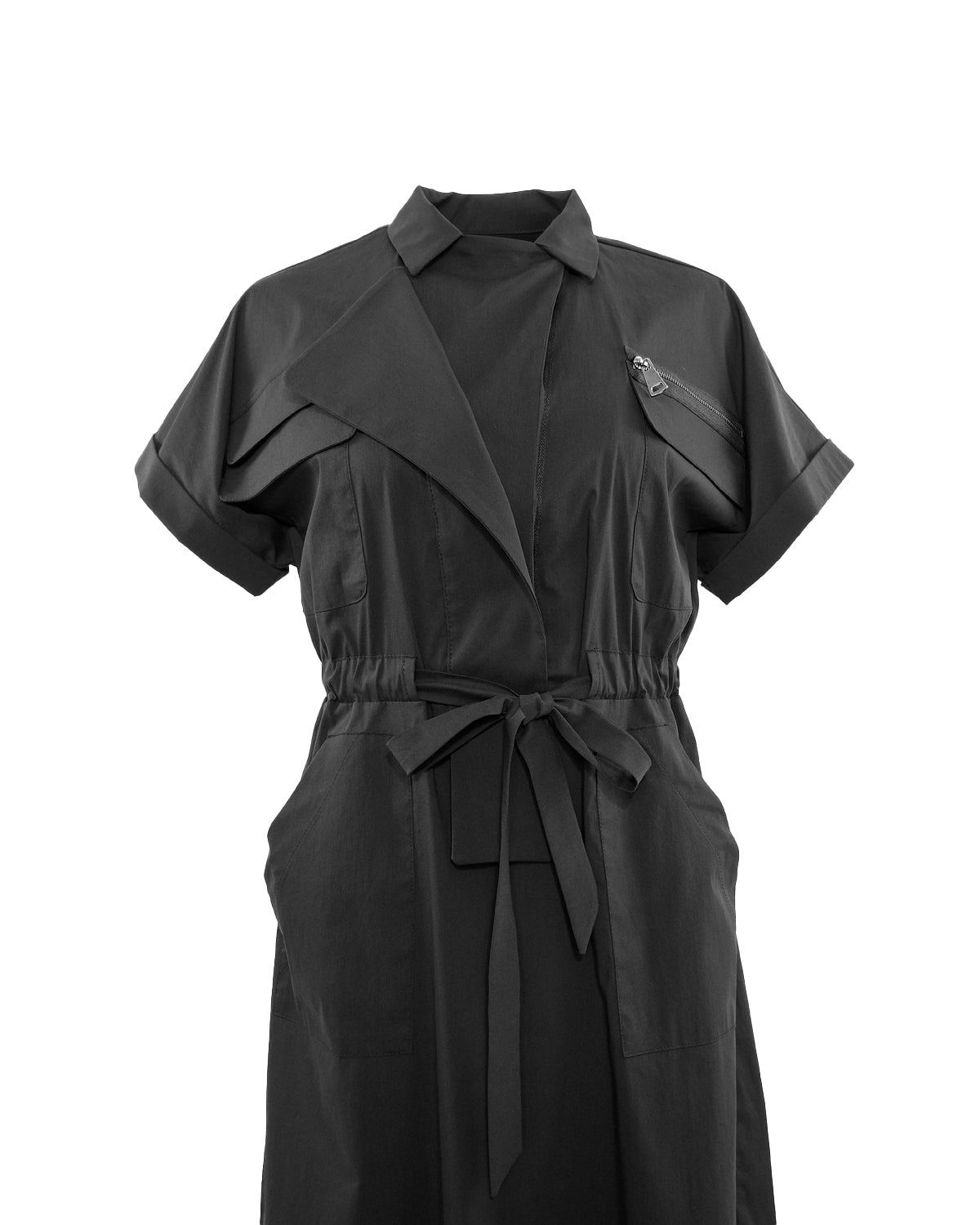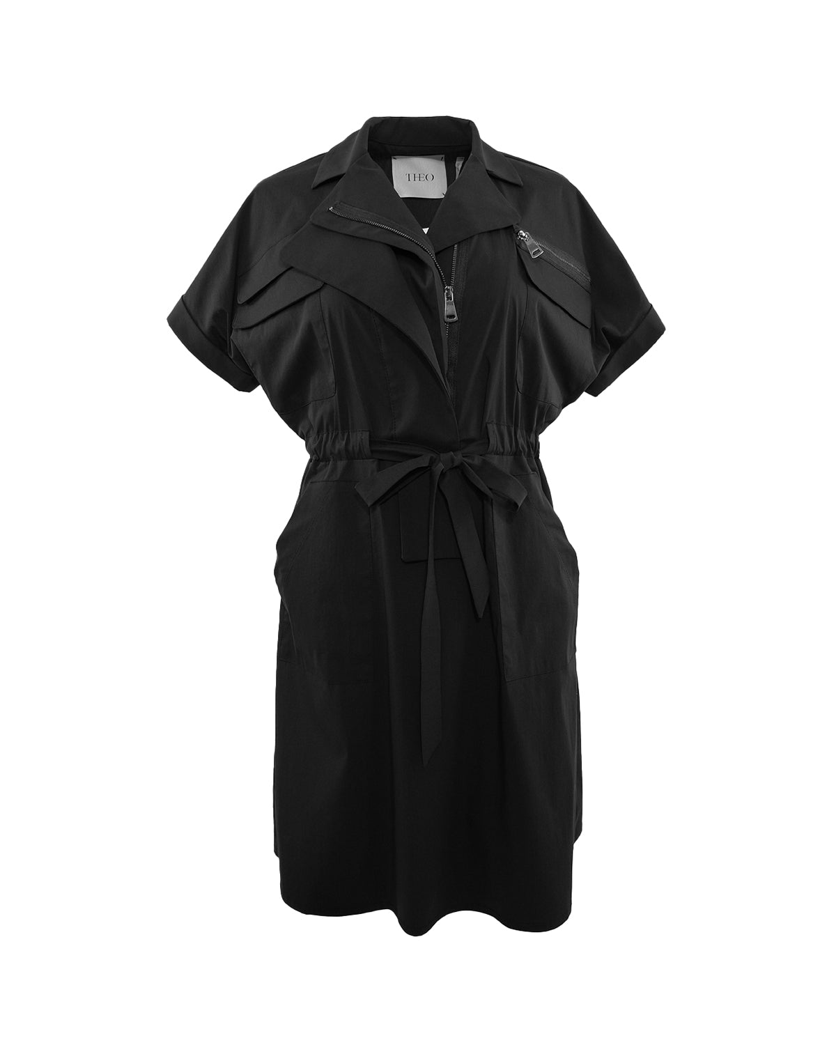 Effortlessly chic, the Astra Zip Dress features a sleek black design with a front zip for easy wear. The tie waist adds a flattering silhouette, while the front flap pockets provide functionality and style. Perfect for any occasion, this dress is a must-have for any wardrobe.