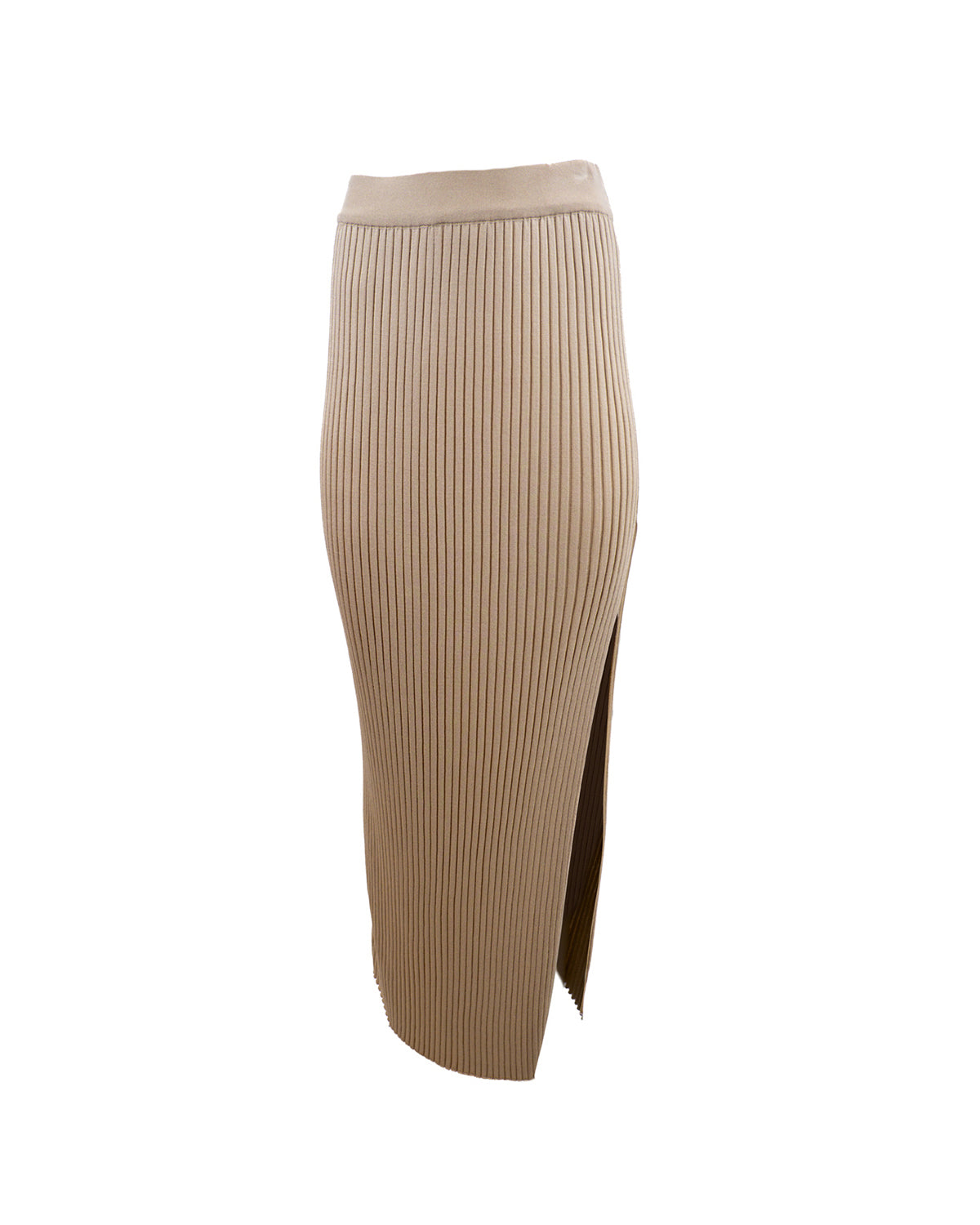 Introducing the Eos Ribbed Maxi Skirt, your new go-to for effortless style. Made with ribbed fabric, this maxi dress is not only comfortable but also features a playful side slit. Perfect for any occasion, this skirt will keep you looking your best!