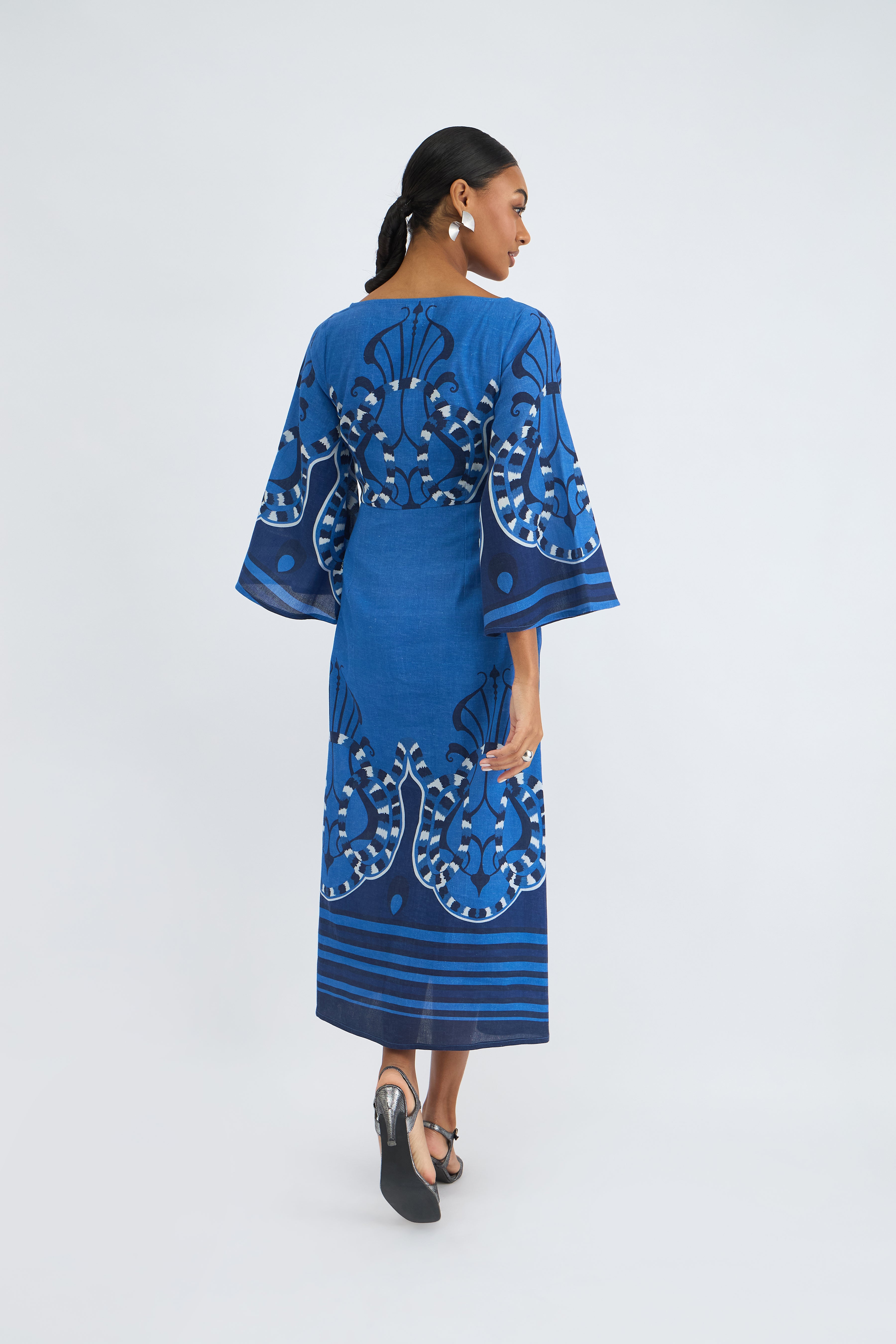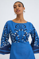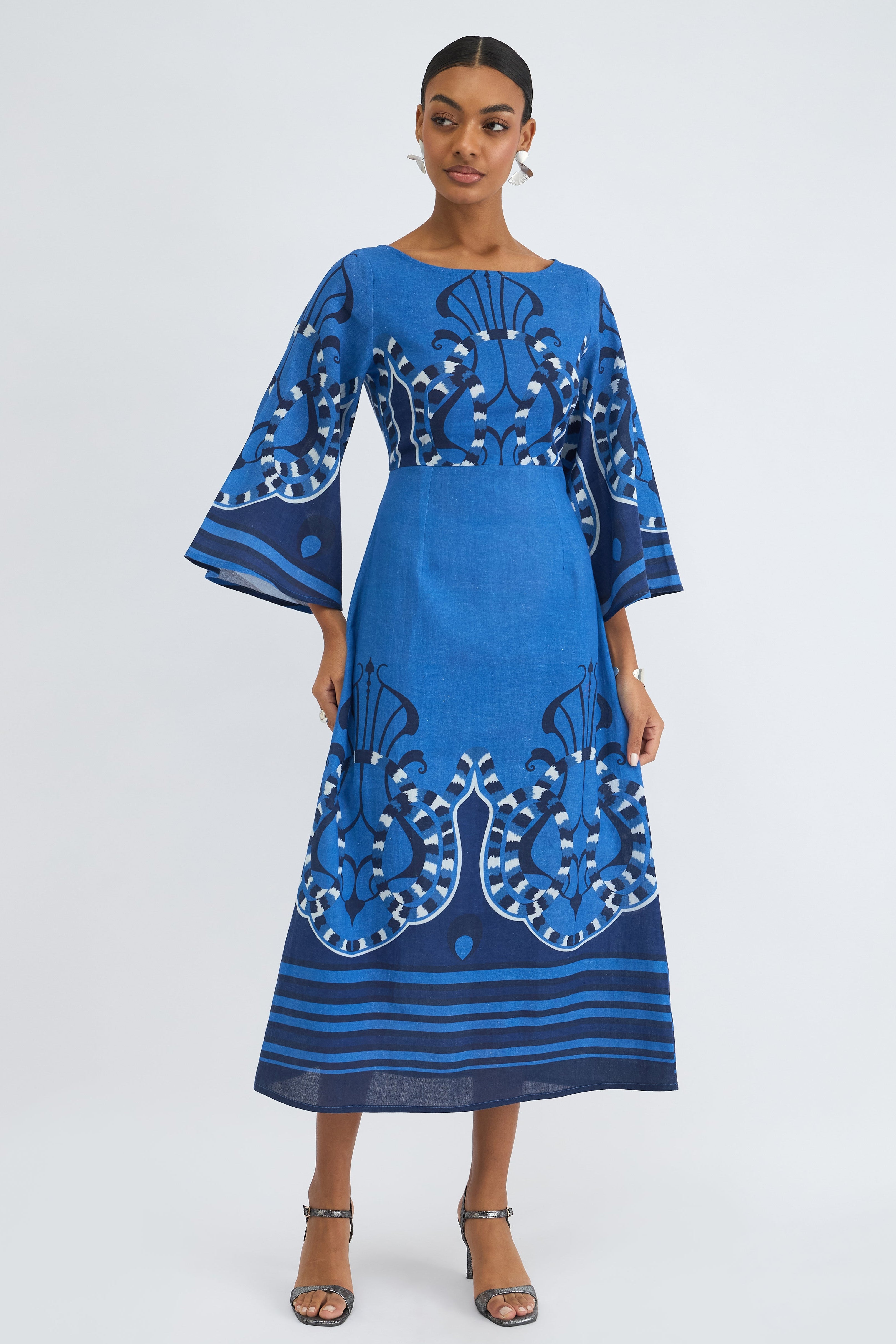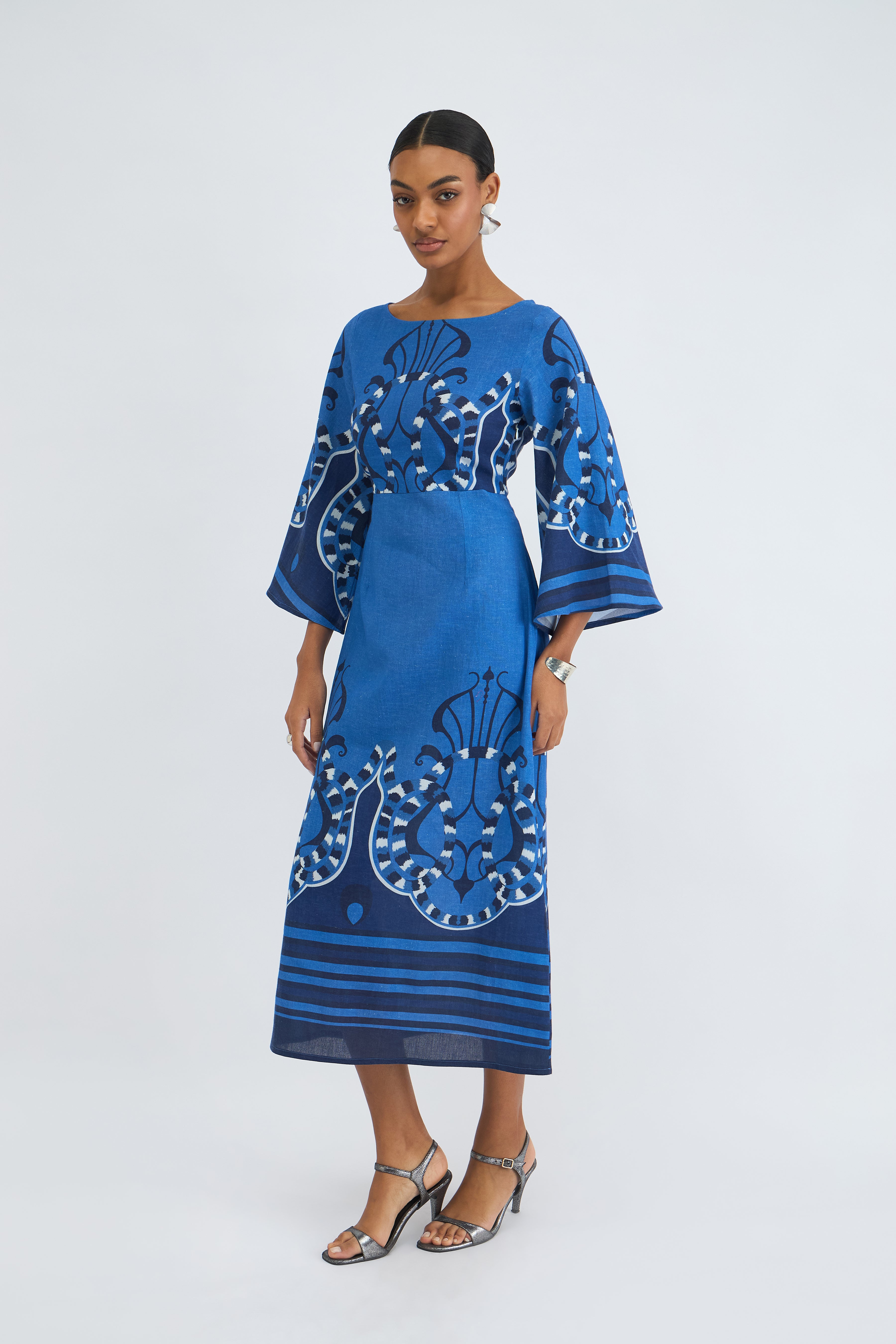 The Camelia dress is the epitome of chic versatility, designed with a flattering A-line silhouette that nips at the waist. Its elegant boat neck and slim-cut shoulders transition into forgiving bell sleeves that cascade effortlessly, combining sophistication with comfort. Perfect for those who appreciate a figure-skimming style that's as easy to wear as it is stylish.